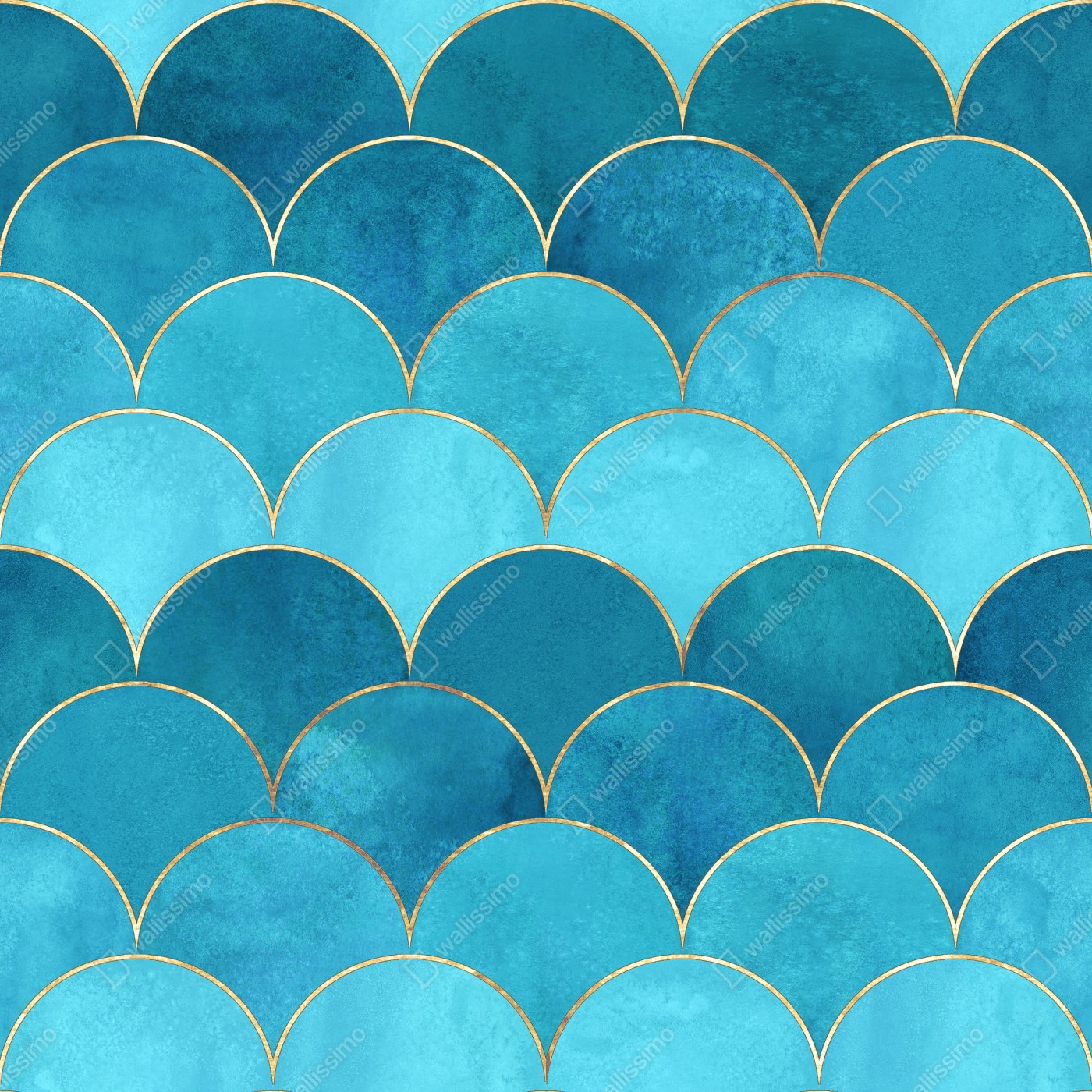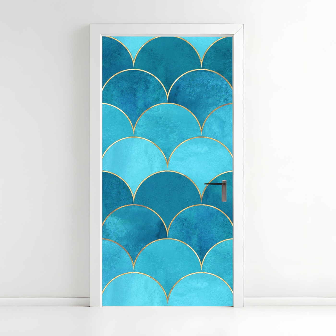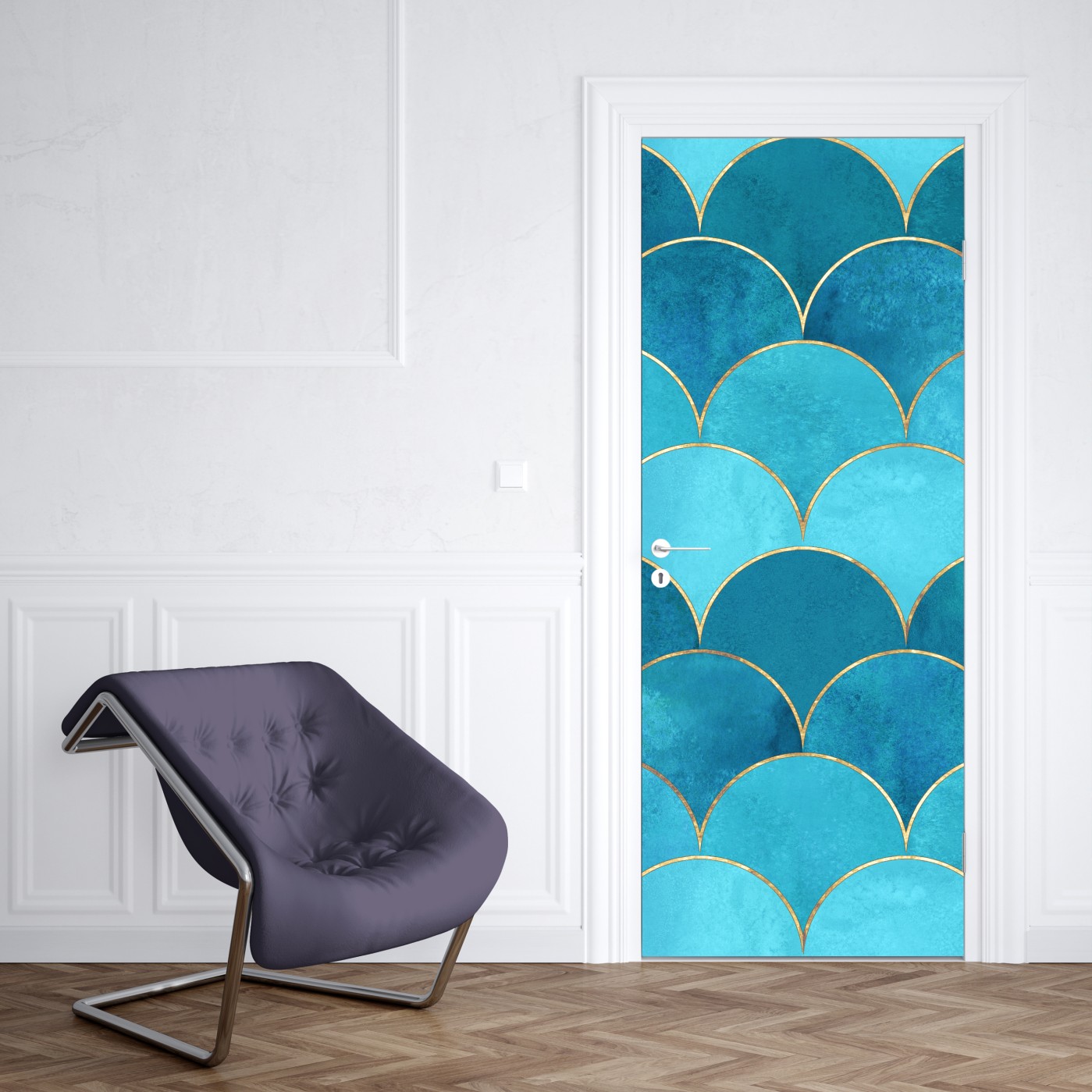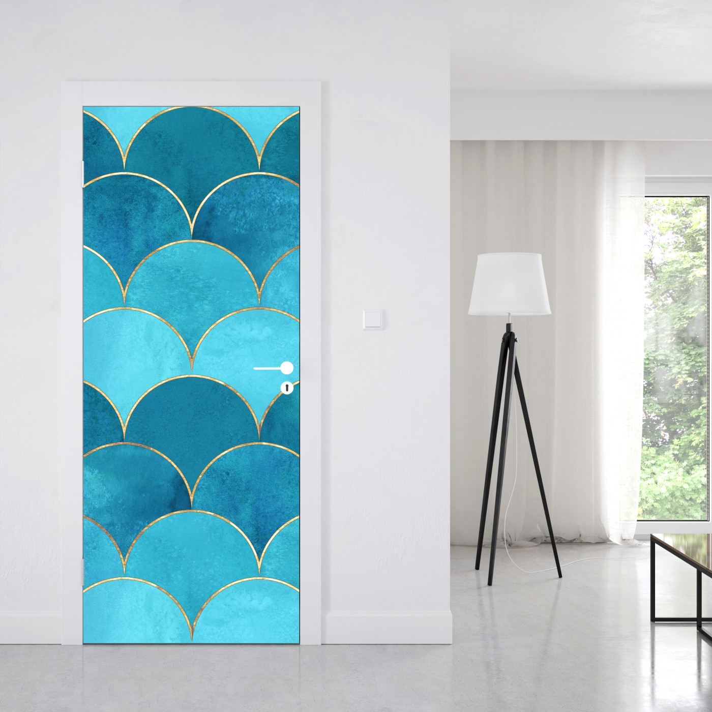 Naklejka na drzwi Turkusowy wzór łusek z złotymi detalami
