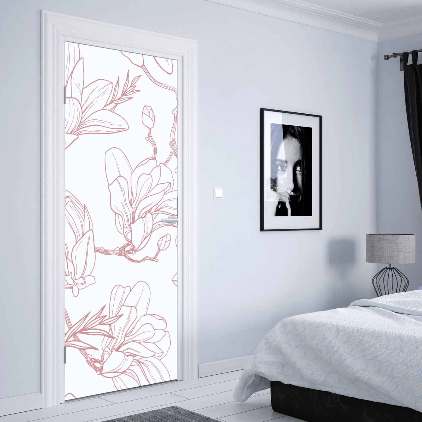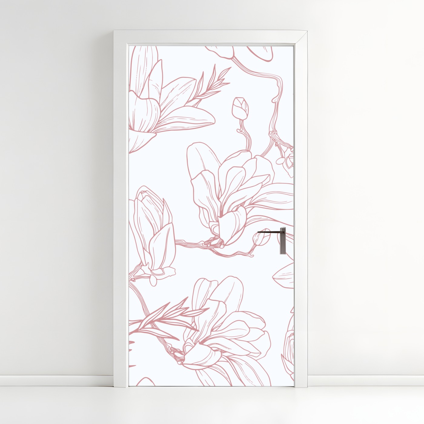 Naklejka na drzwi Delikatny wzór magnolii w miękkim różu
