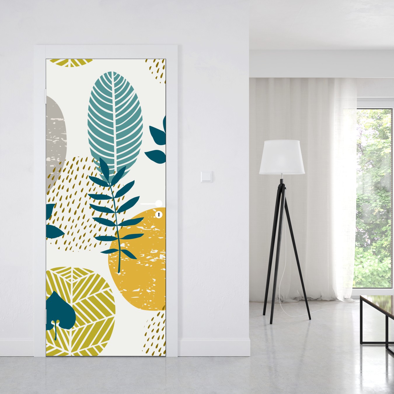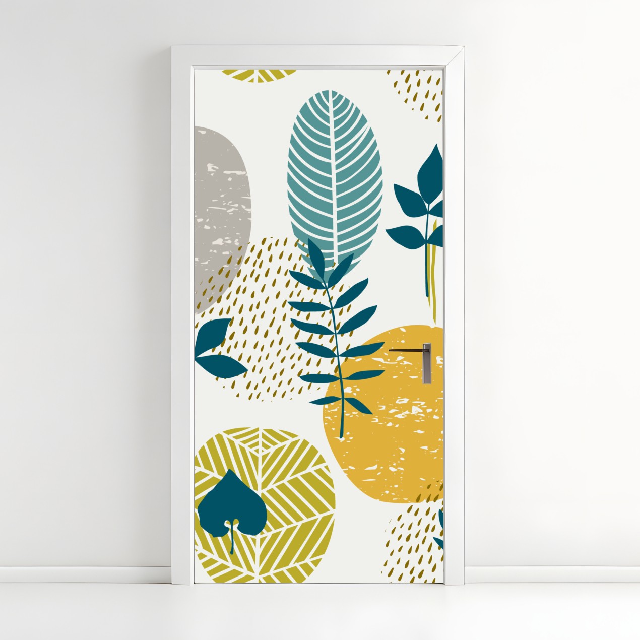 Naklejka na drzwi Turkusowo-musztardowy botaniczny wzór