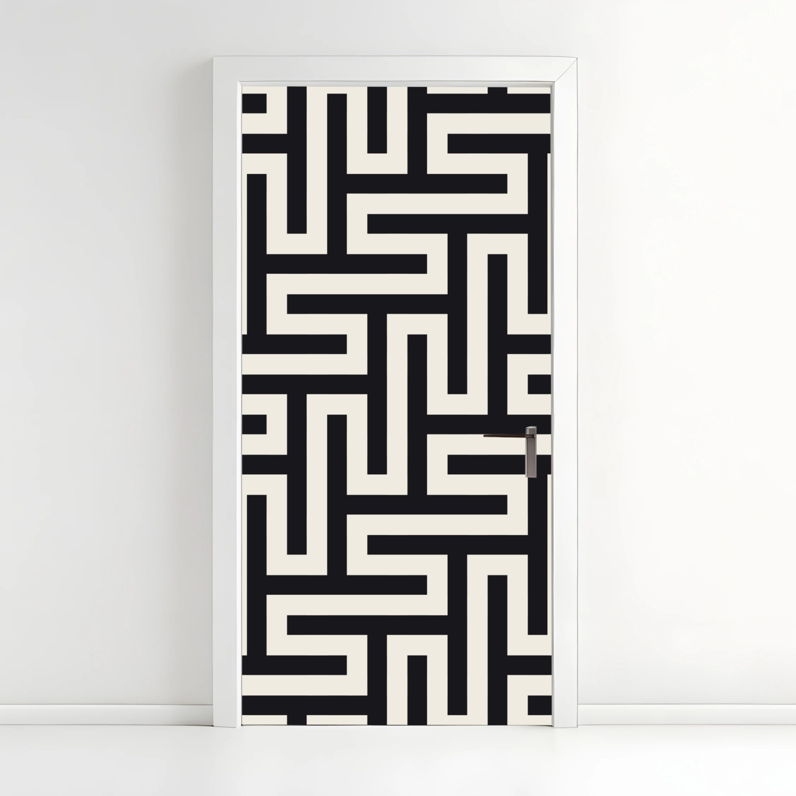 Naklejka na drzwi Geometryczny wzór labiryntu w beżu i czerni