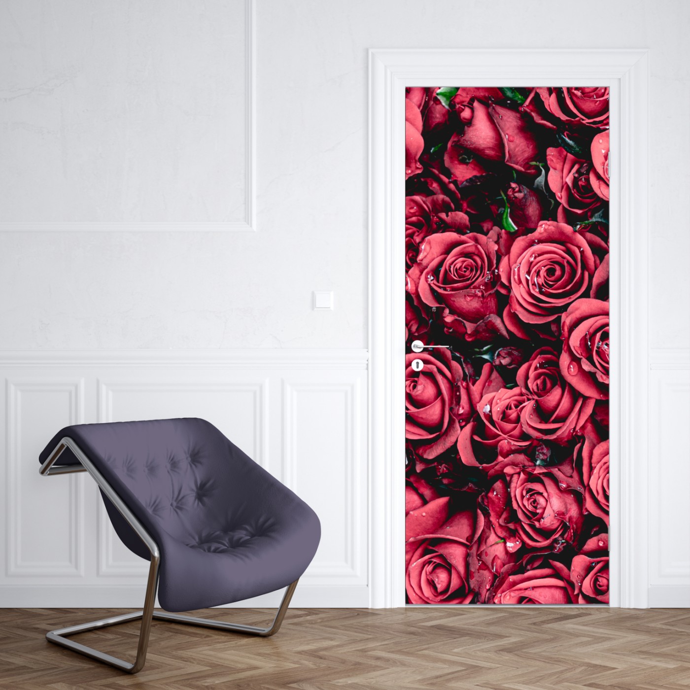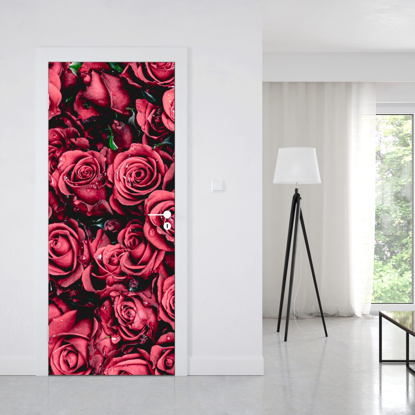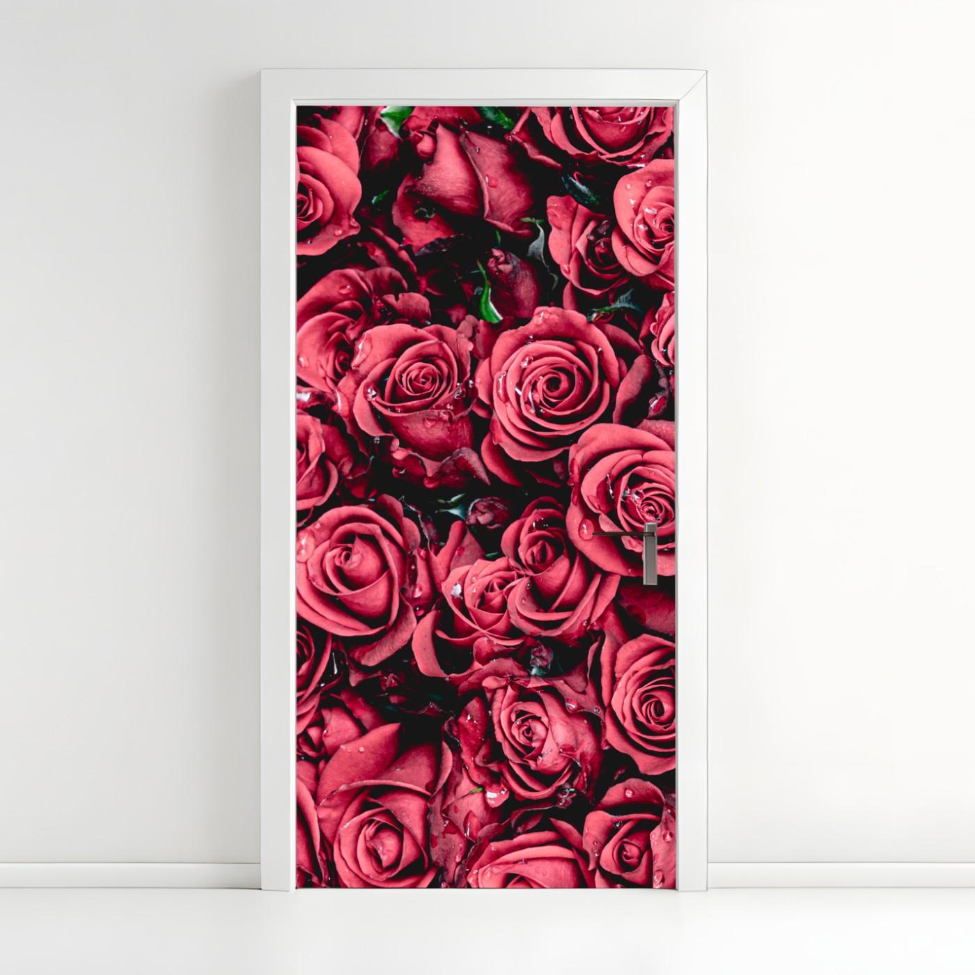 Naklejka na drzwi Gęste czerwone róże dekoracja ścienna