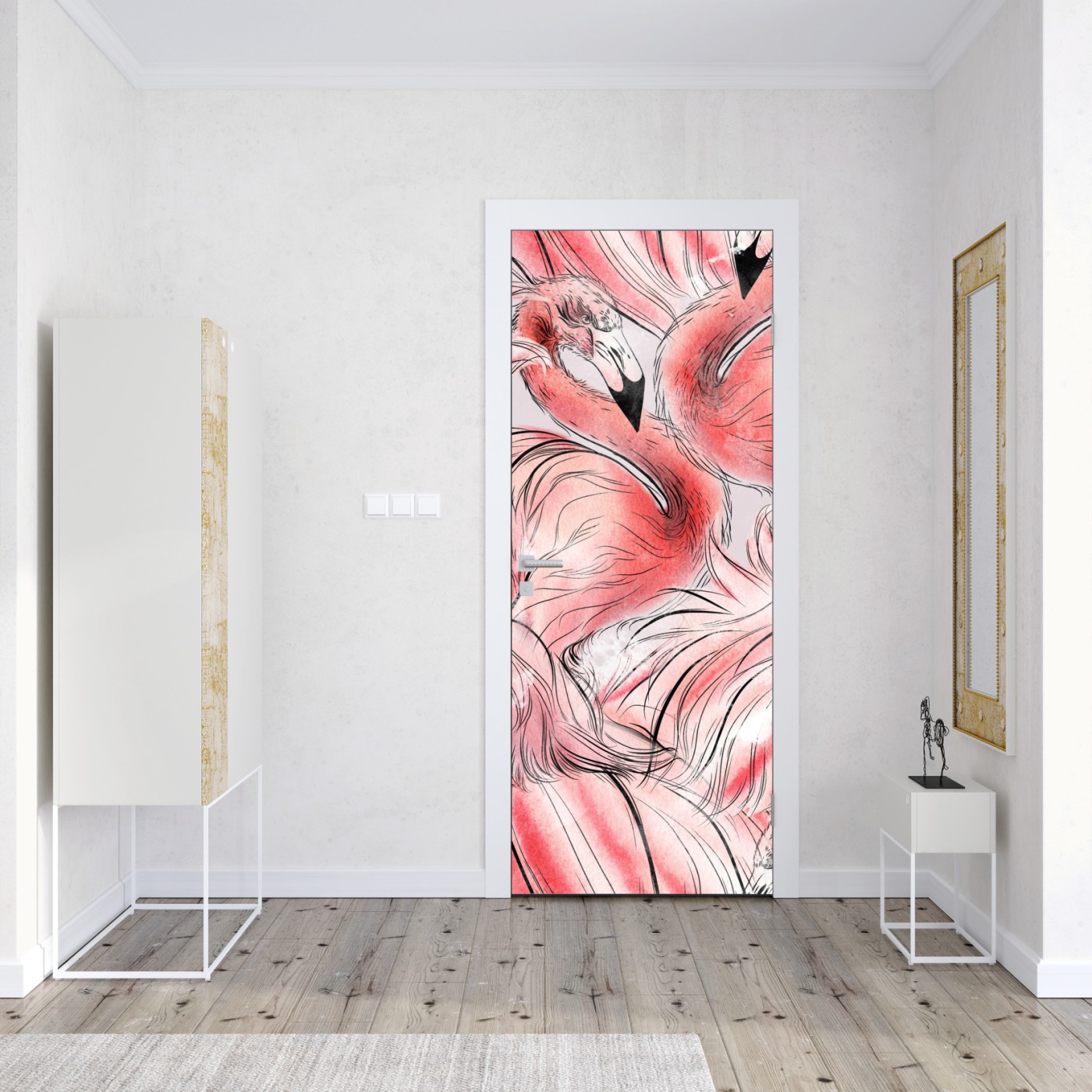 Naklejka na drzwi Akwarelowy wzór z flamingami