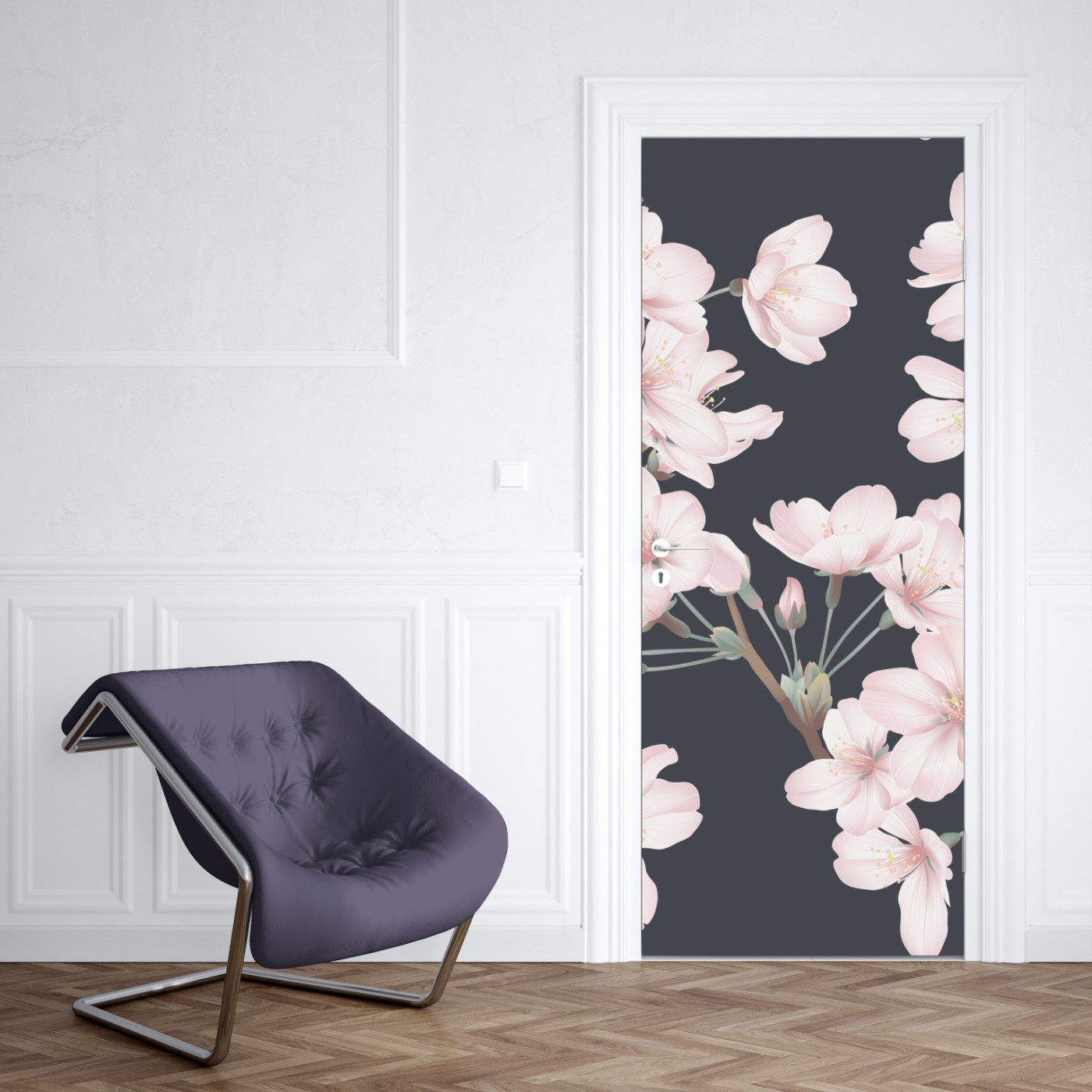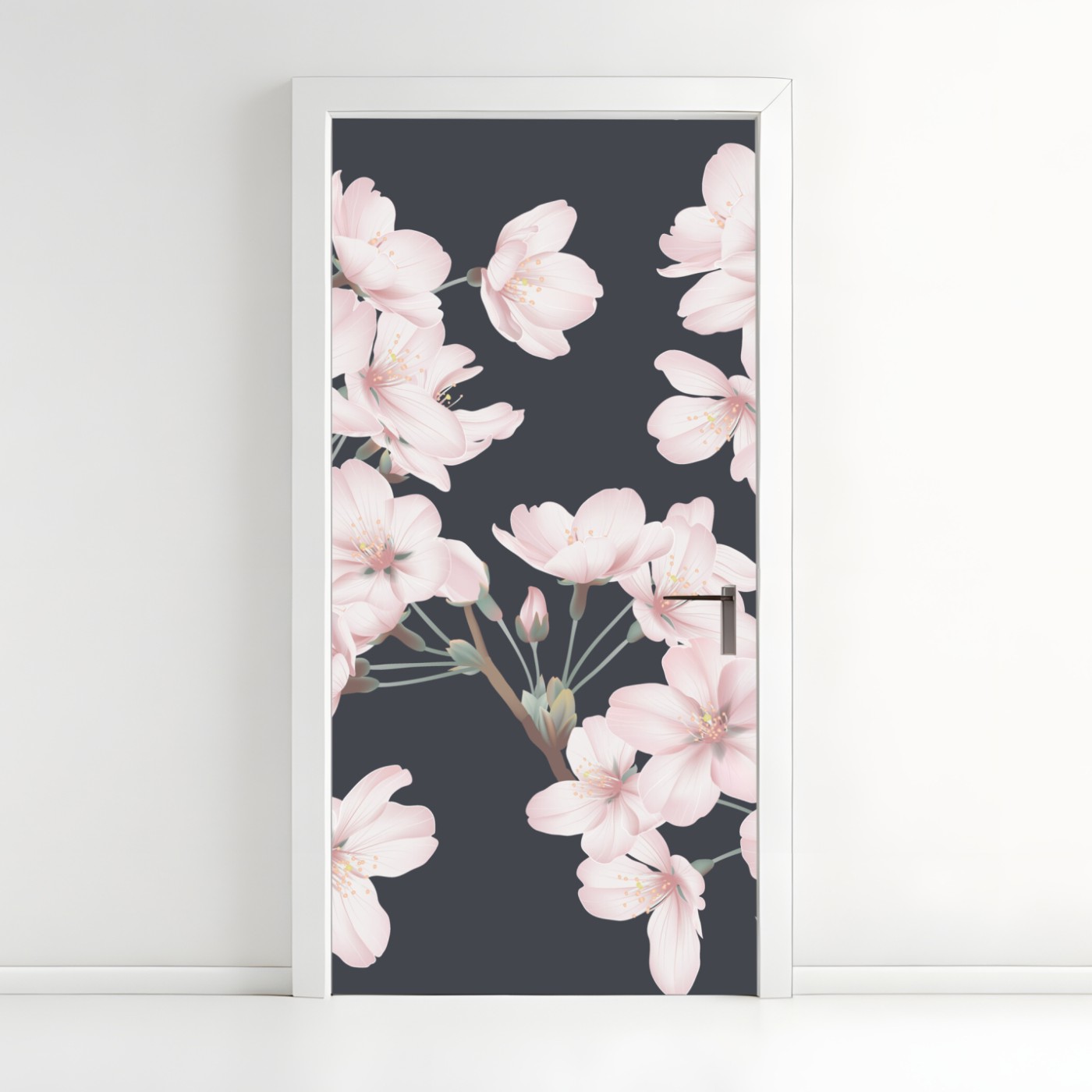 Naklejka na drzwi Delikatny wzór kwiatów wiśni