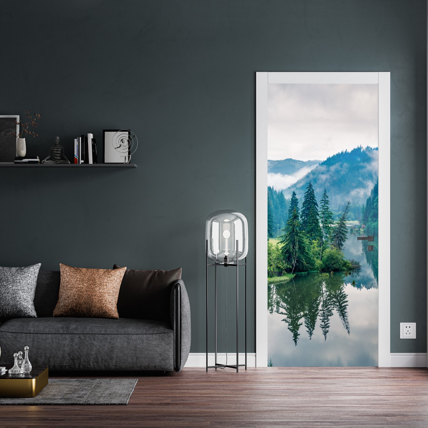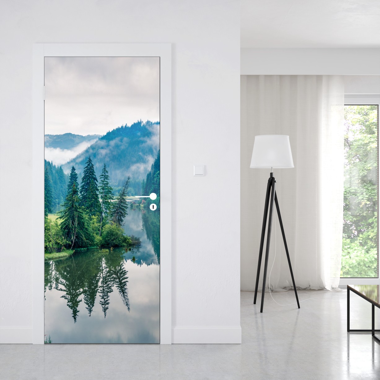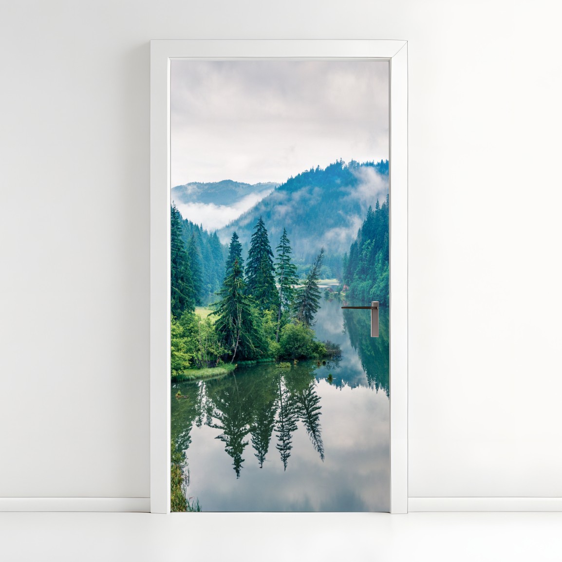 Naklejka na drzwi Mglisty poranek nad Lacu Rosu