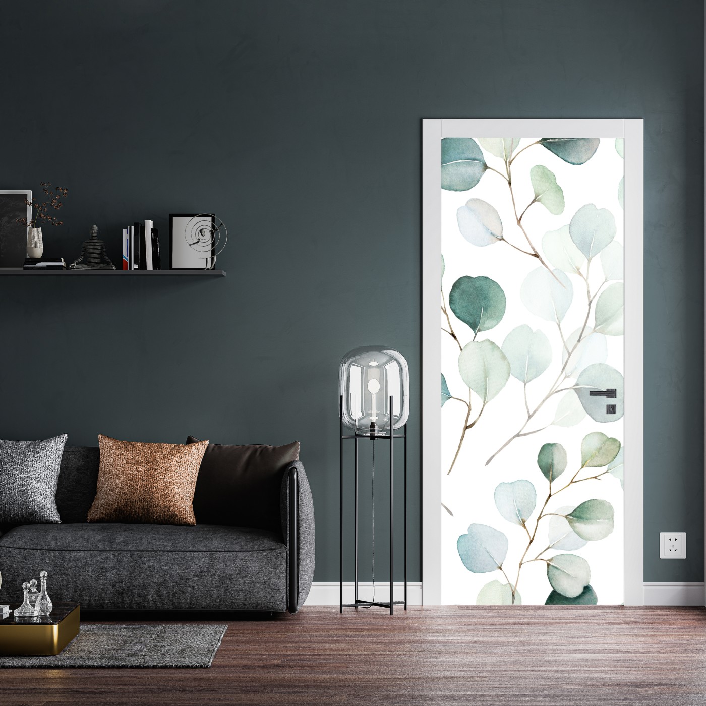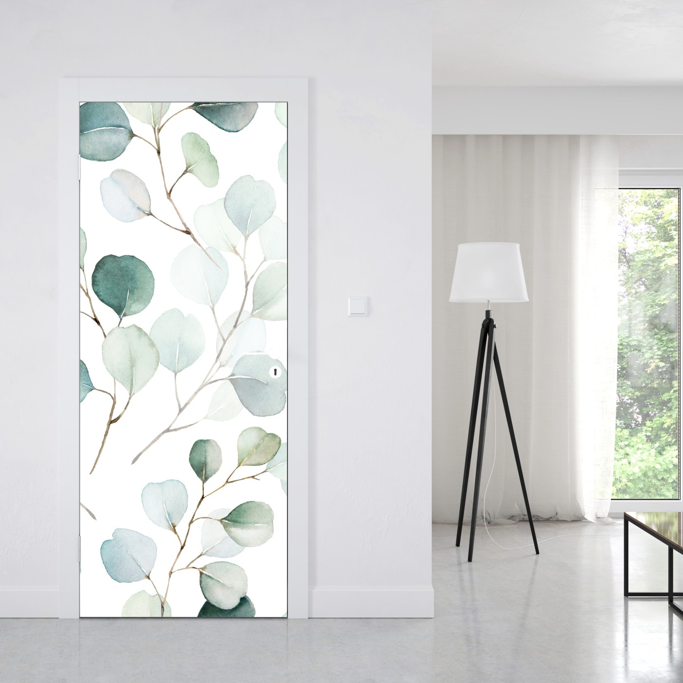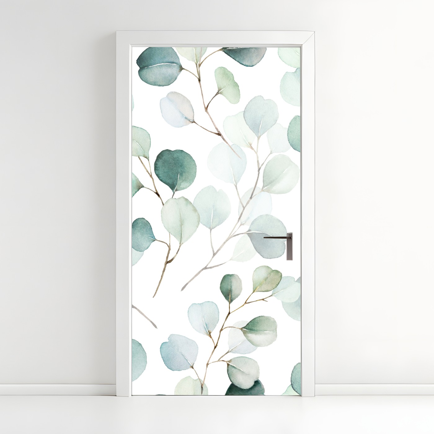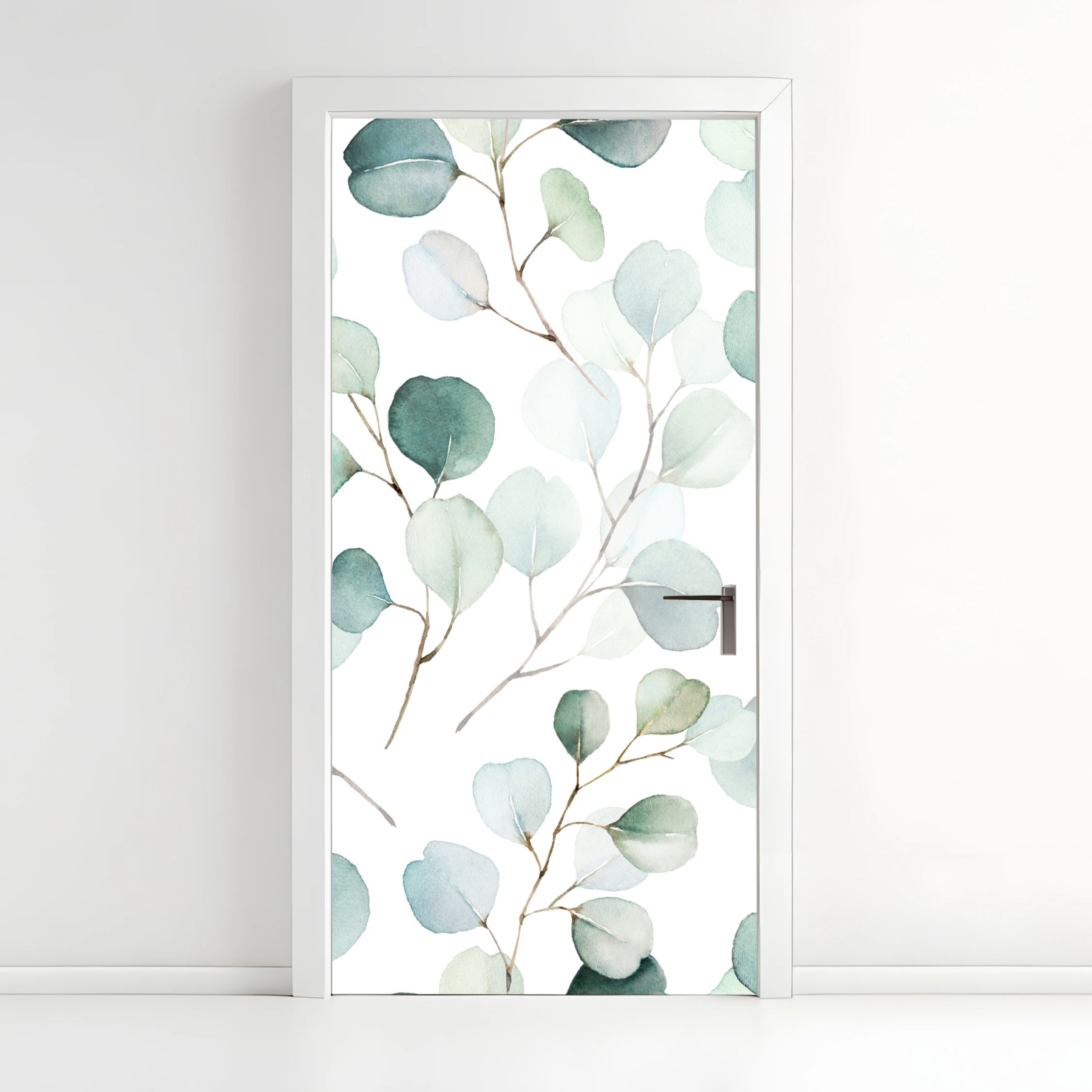Naklejka na drzwi Delikatny wzór liści eukaliptusa w akwareli