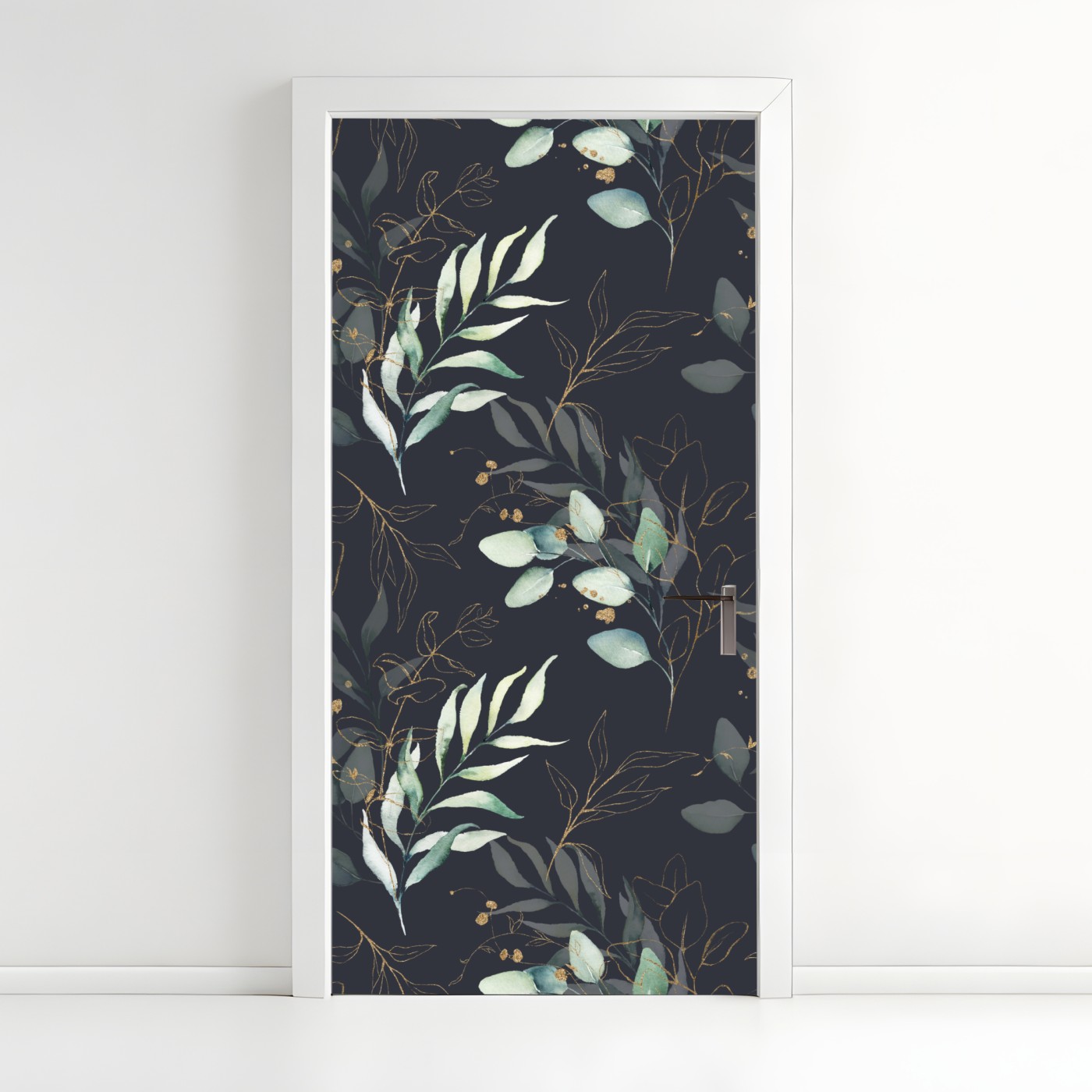 Naklejka na drzwi Akwarelowe liście eukaliptusa na ciemnym tle