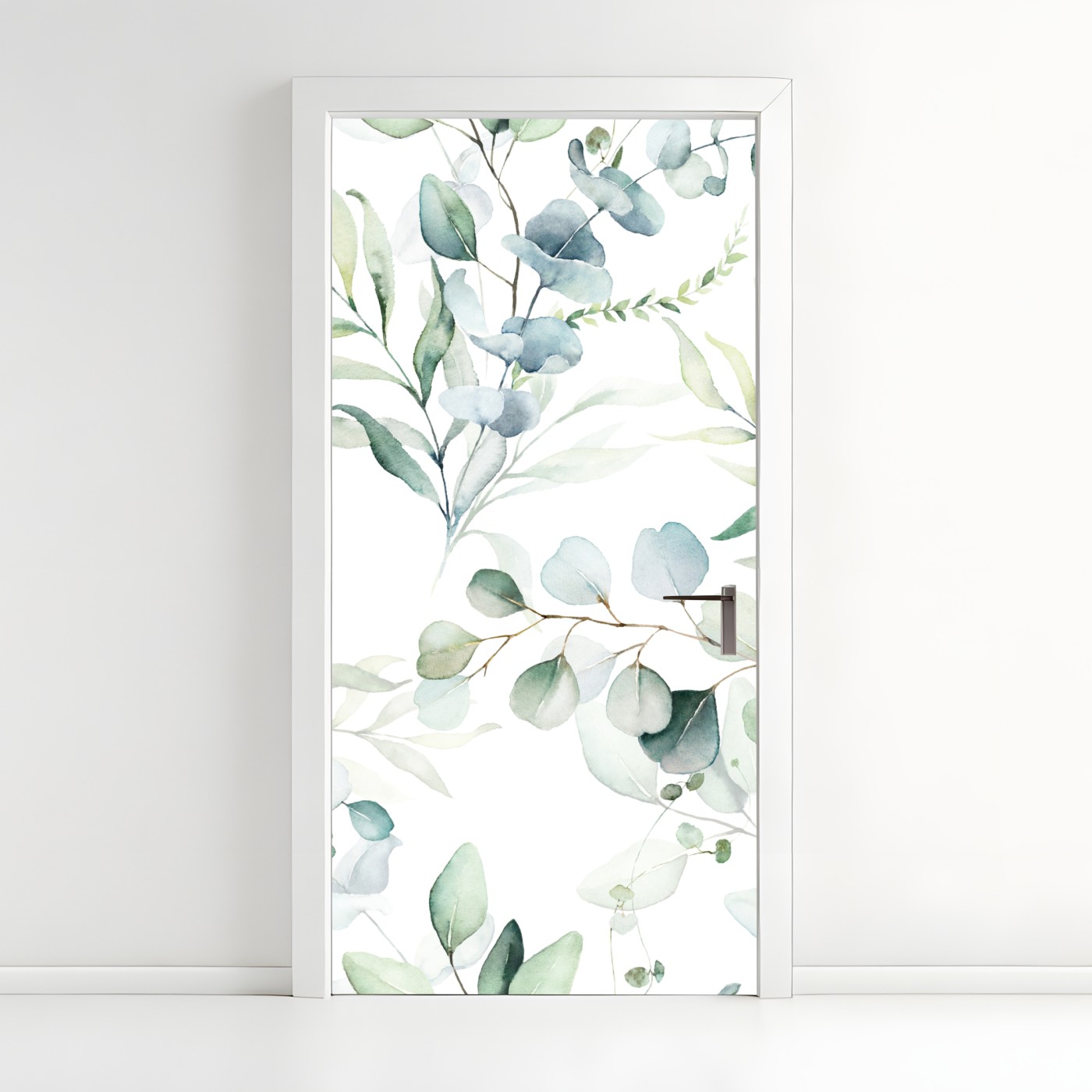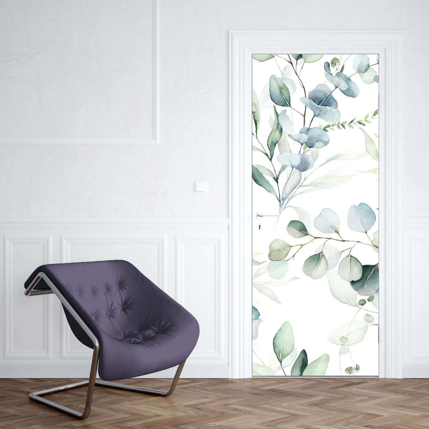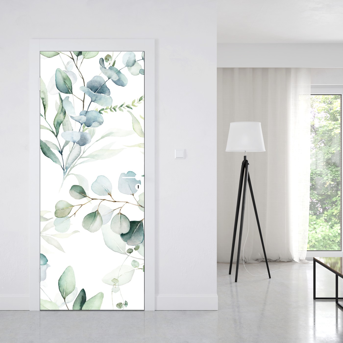Naklejka na drzwi Akwarelowy wzór eukaliptusa i liści