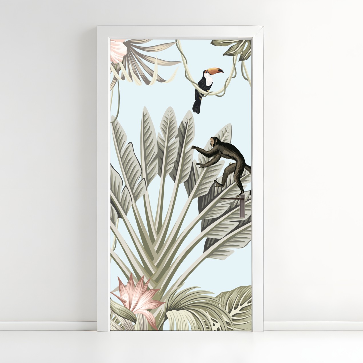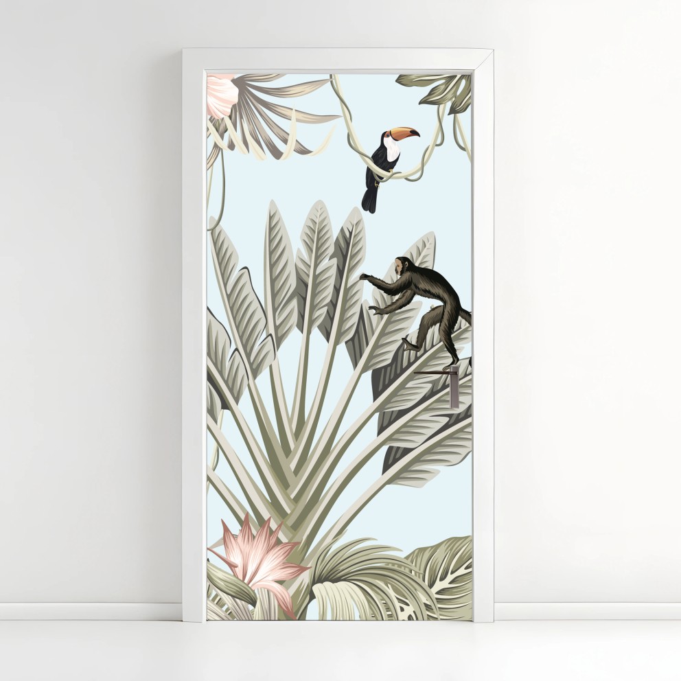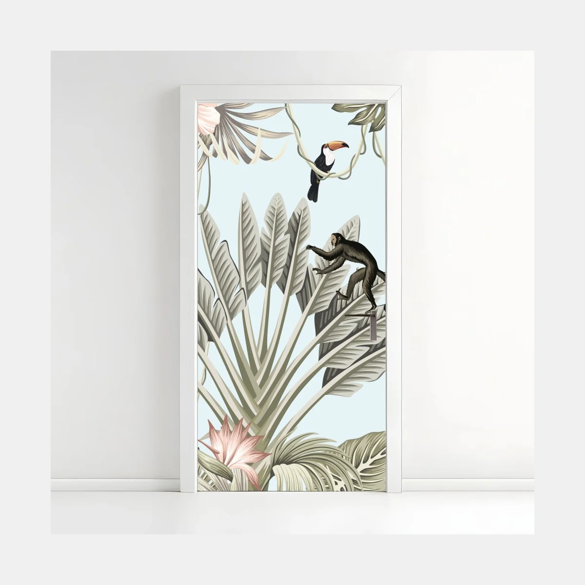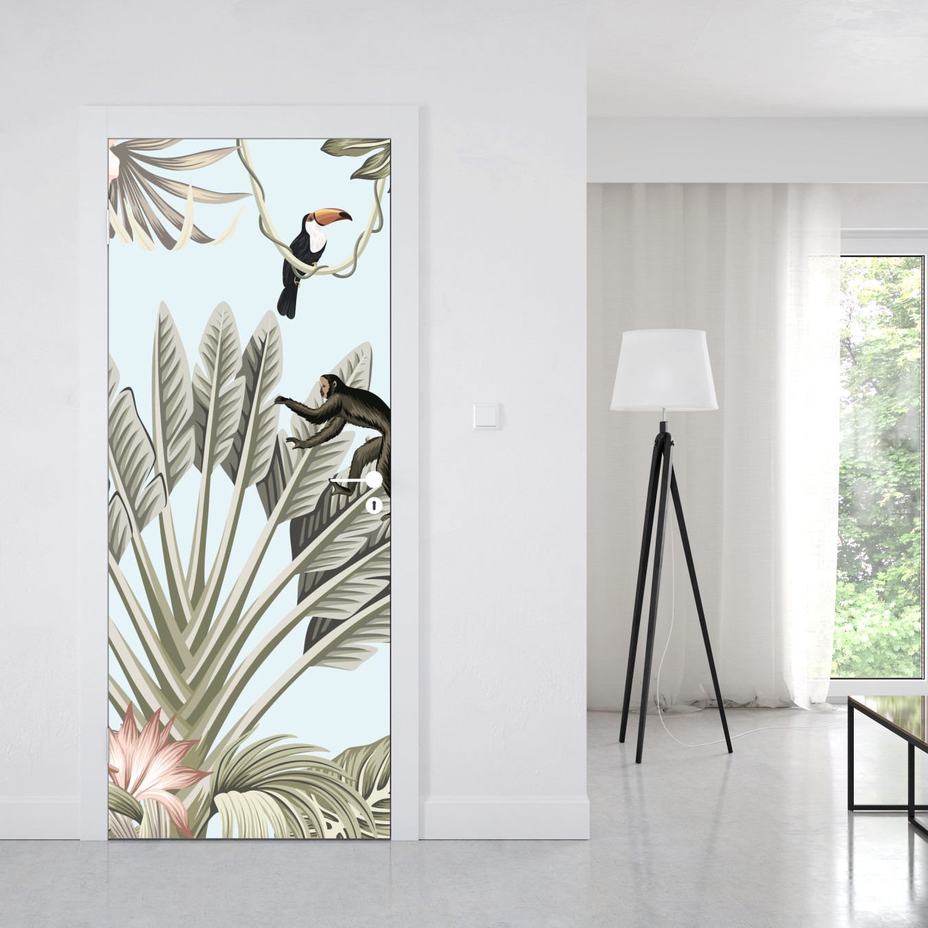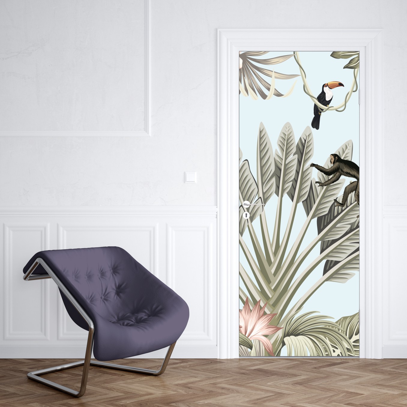 Naklejka na drzwi Pastelowy wzór dżungli z zwierzętami
