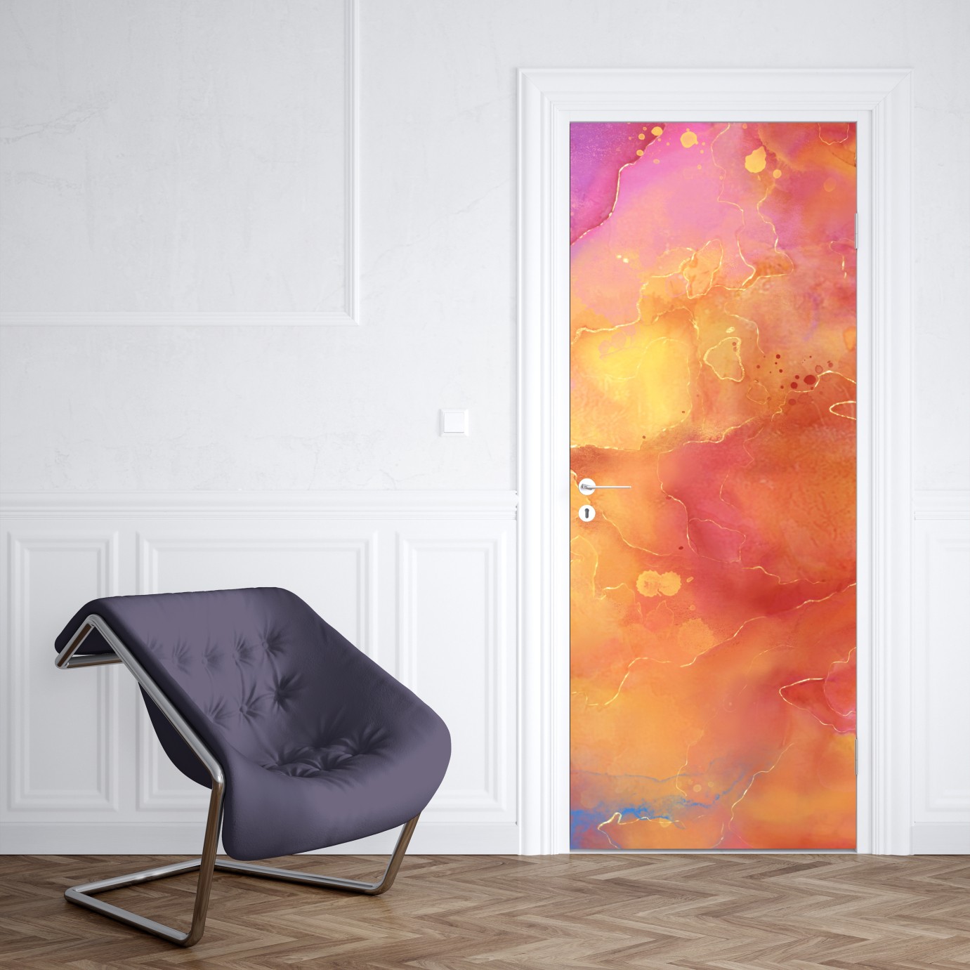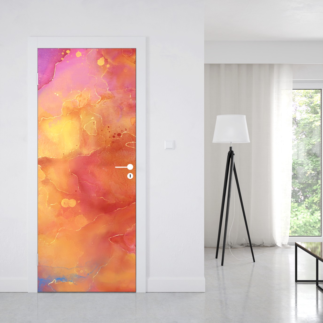 Naklejka na drzwi Żywa akwarelowa abstrakcja w ciepłych barwach