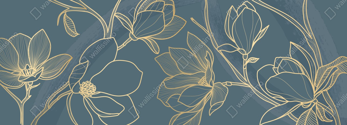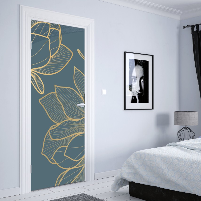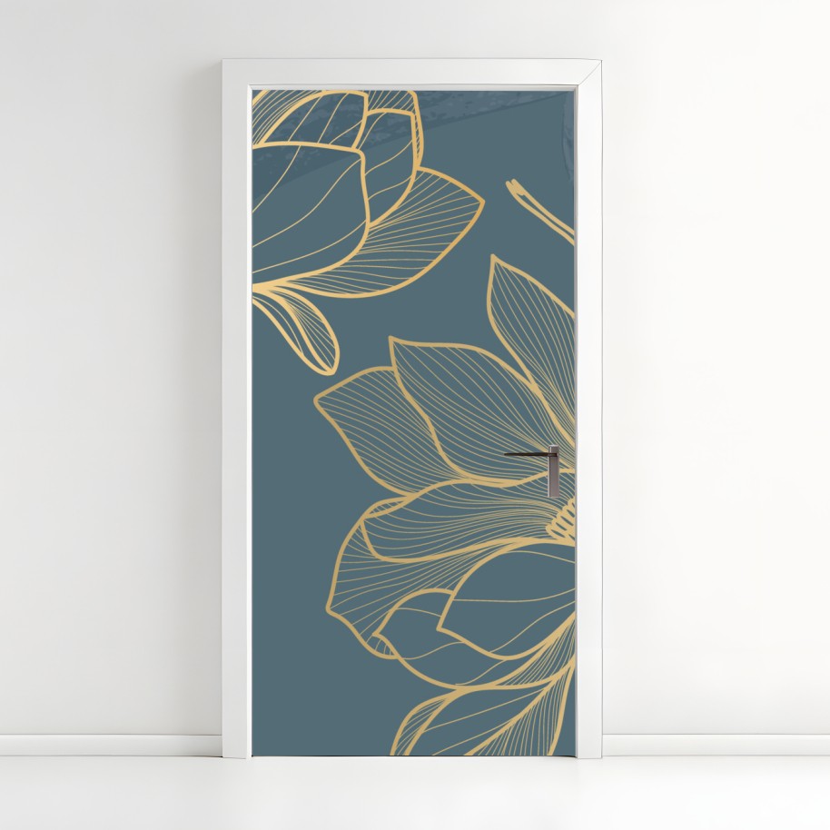 Naklejka na drzwi Złota magnolia na turkusowym tle