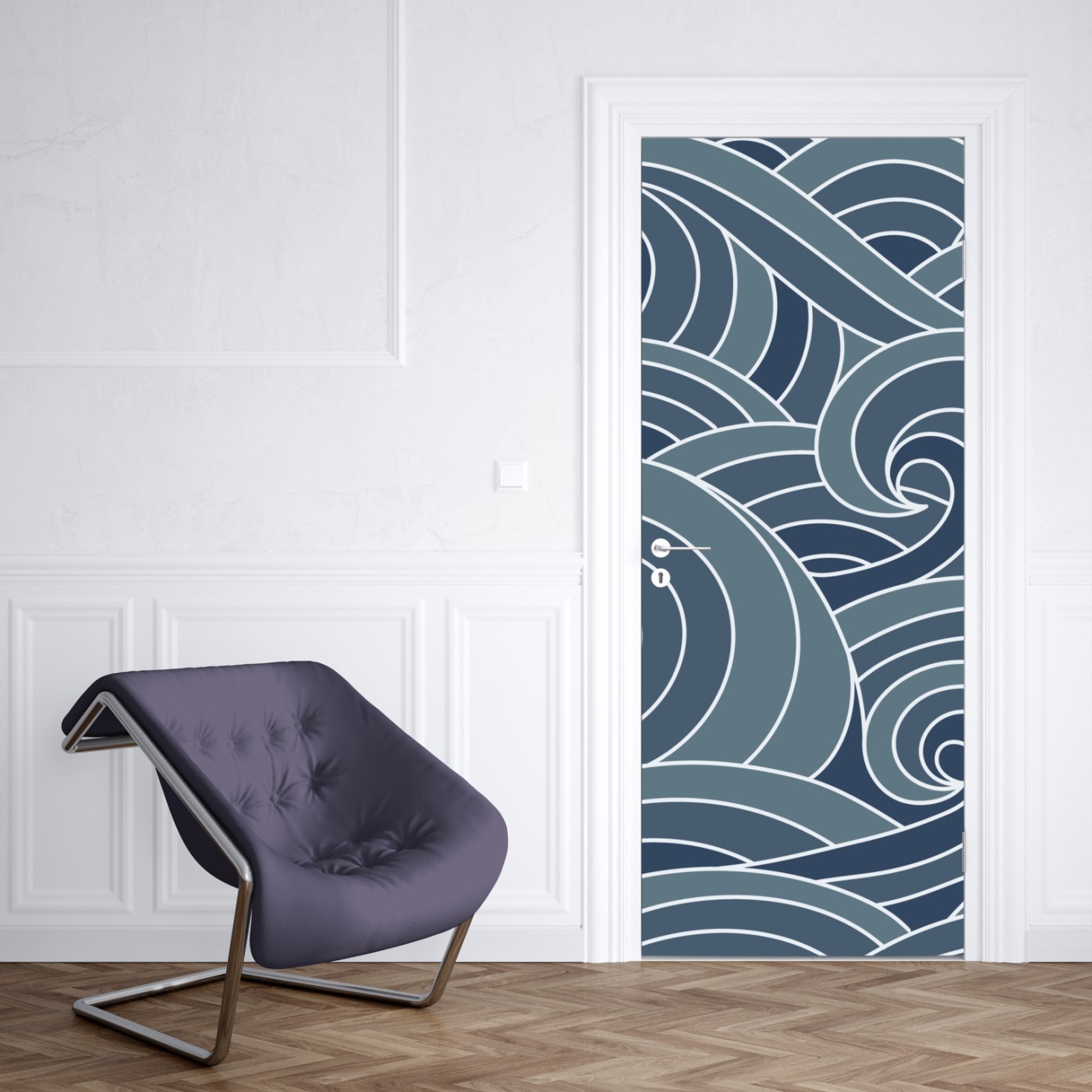 Naklejka na drzwi Stylizowany wzór fal morskich