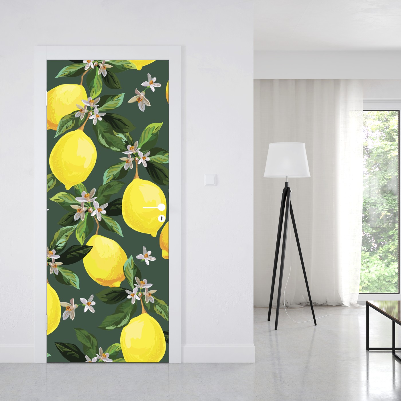 Naklejka na drzwi Botaniczny wzór z cytrynami