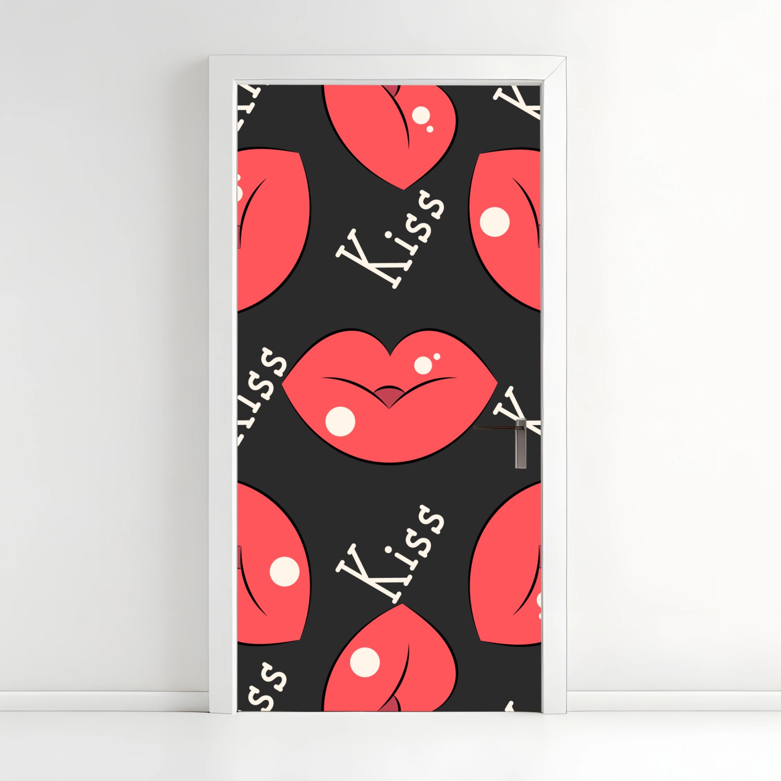 Naklejka na drzwi Zabawny wzór różowych ust