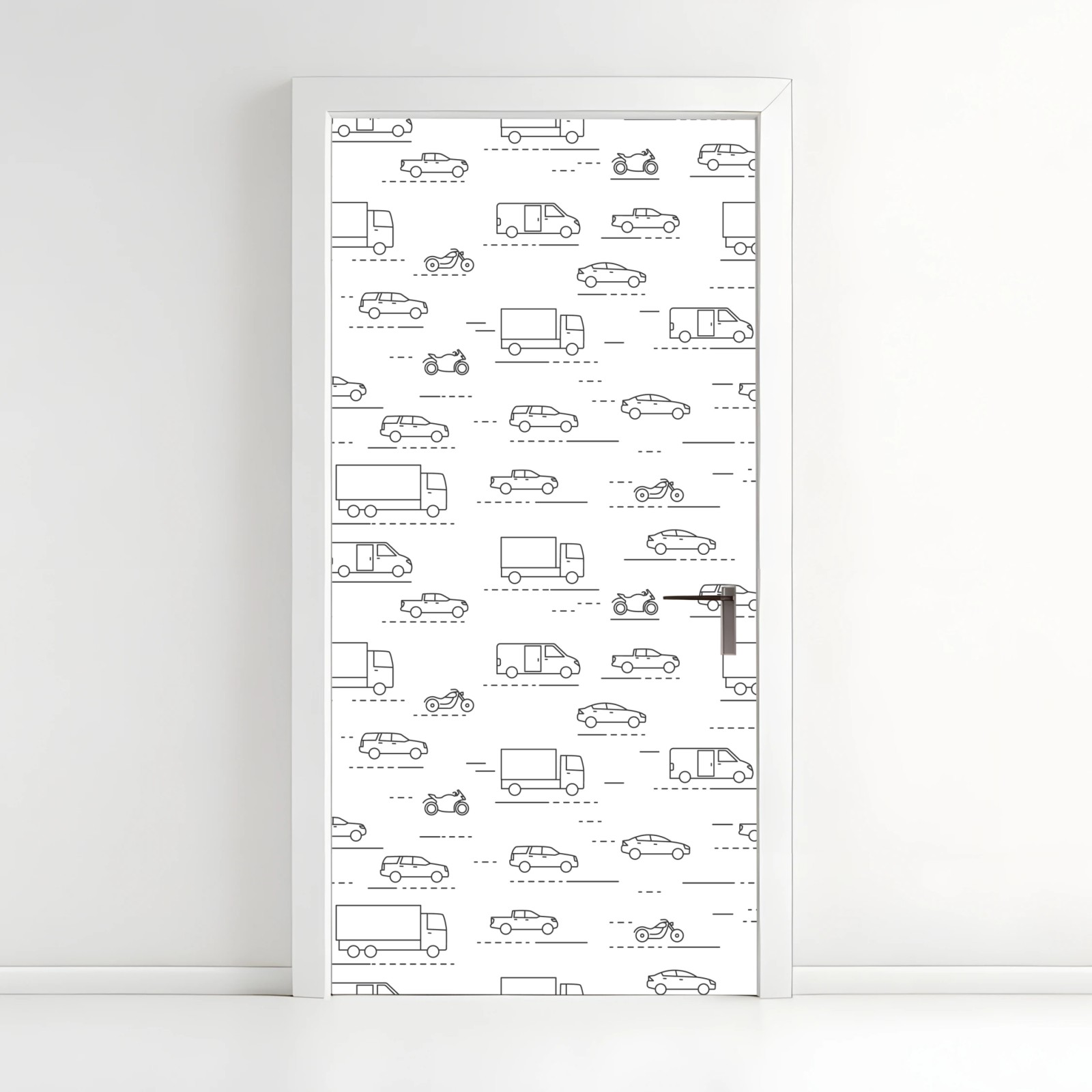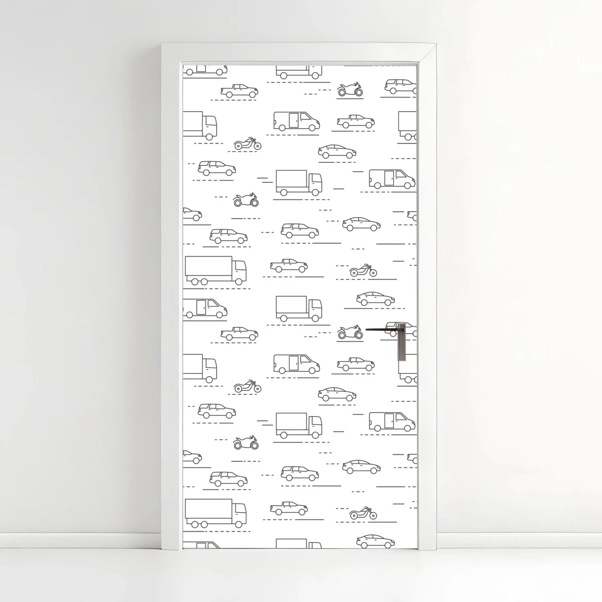 Naklejka na drzwi Monochromatyczny wzór pojazdów