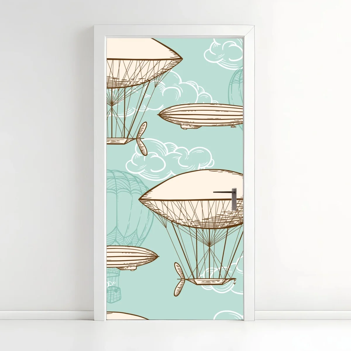 Naklejka na drzwi Wzór ze starymi sterowcami i balonami