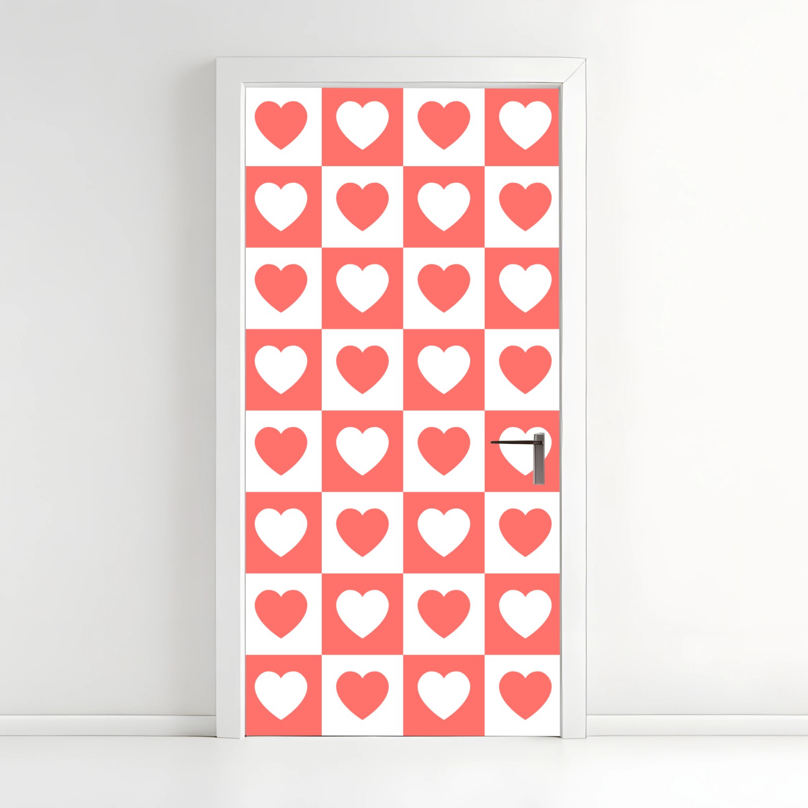 Naklejka na drzwi Różowy wzór serc w szachownicy