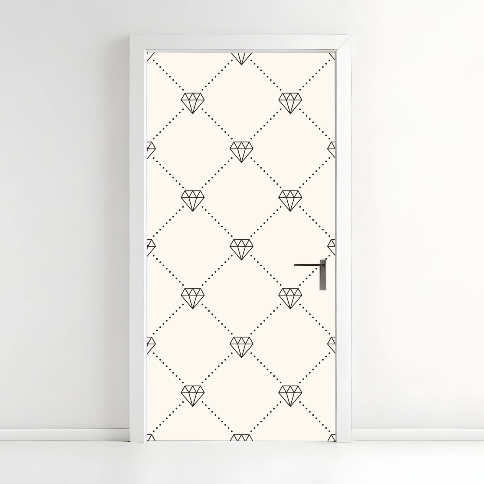 Naklejka na drzwi Wzór kratki z diamentami na beżowym tle