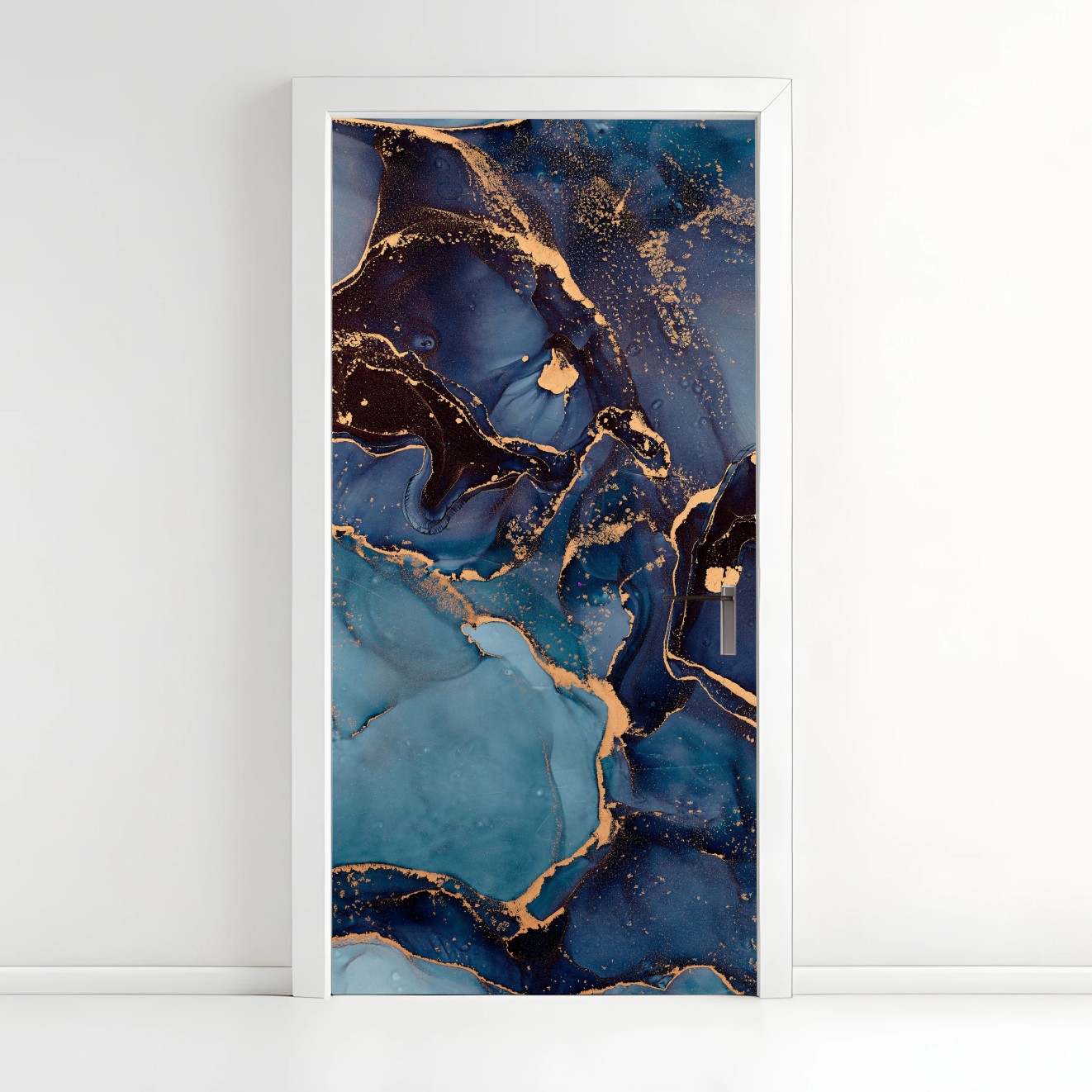 Naklejka na drzwi Głębokie oceaniczne błękity ze złotymi żyłami