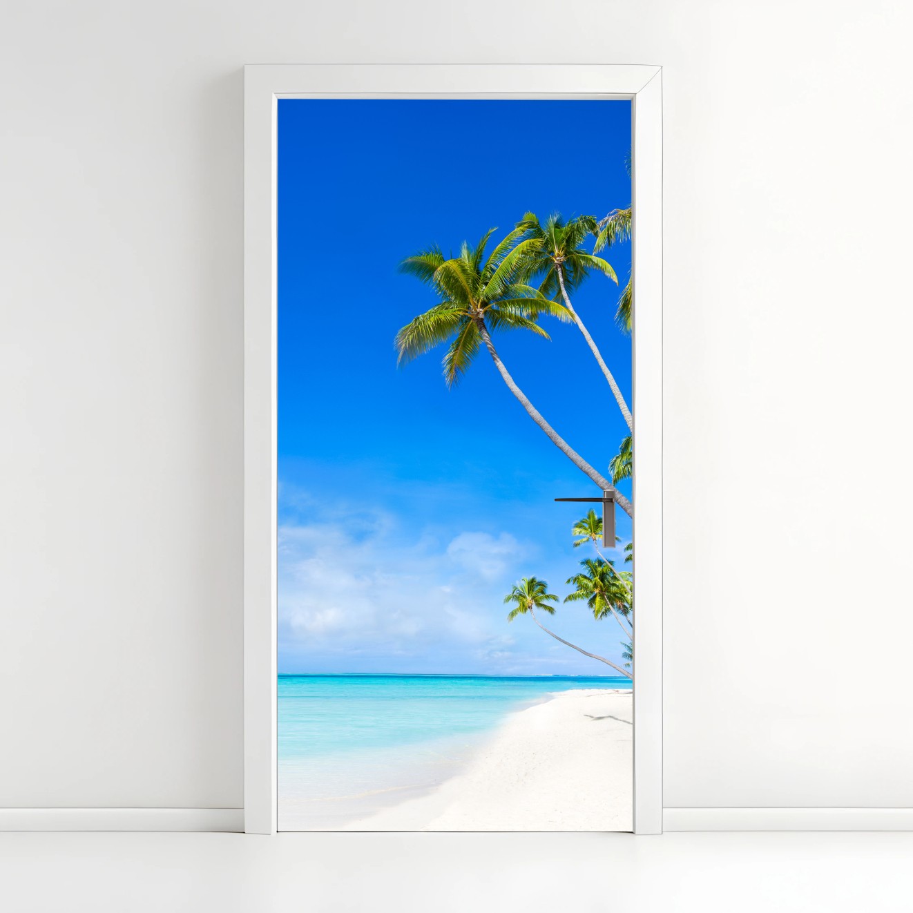 - ocean, lato, niebo, palmy, morze, wakacje, raj, turkusowa woda, tropikalna plaża, biały piasek
