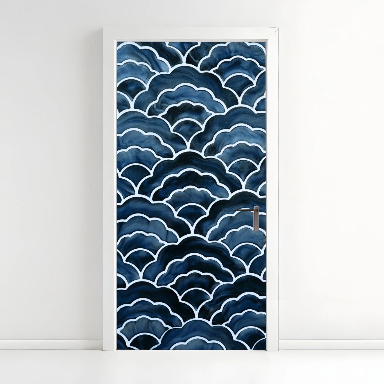 Naklejka na drzwi Japoński niebieski wzór seigaiha