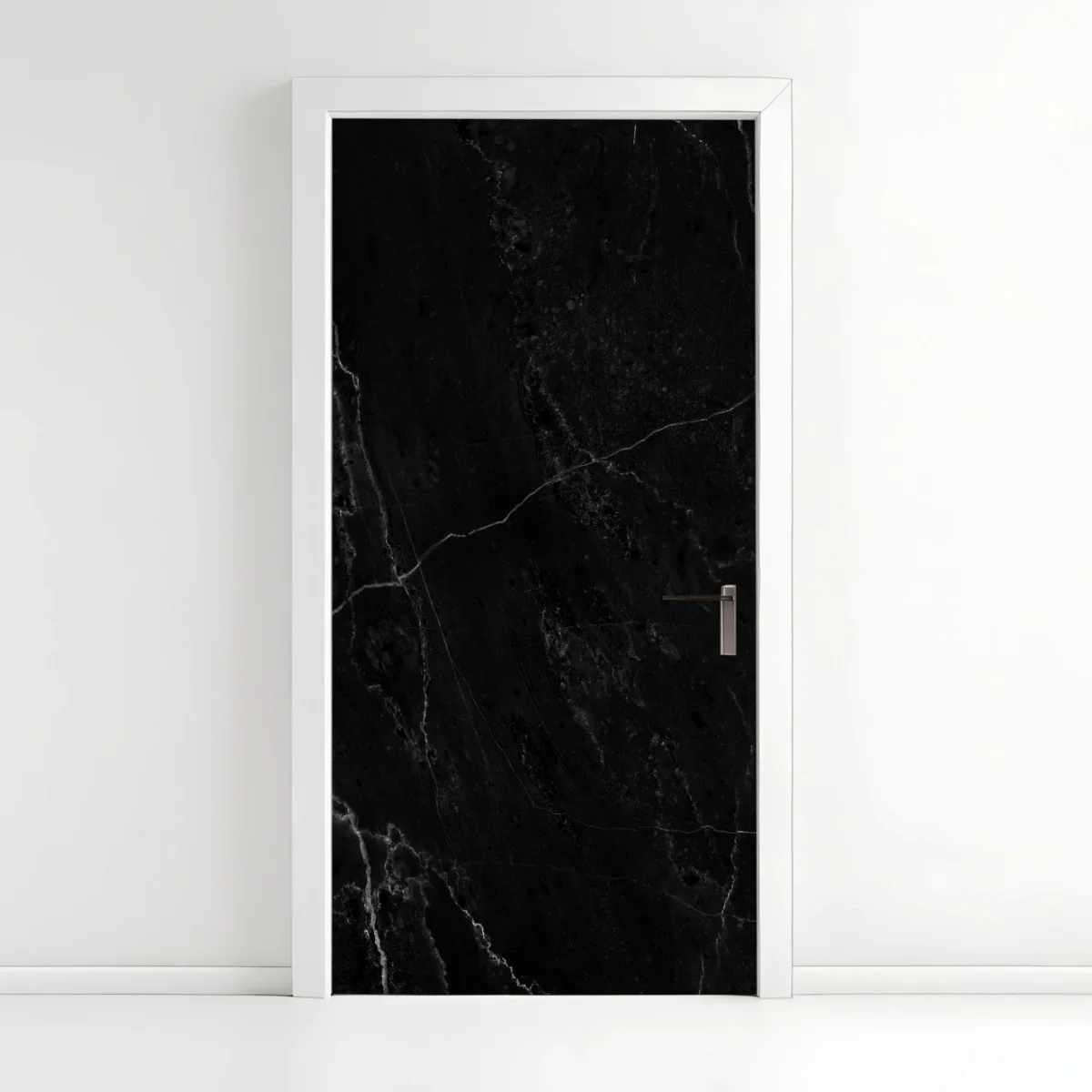 Naklejka na drzwi Czarny marmur z białymi żyłkami