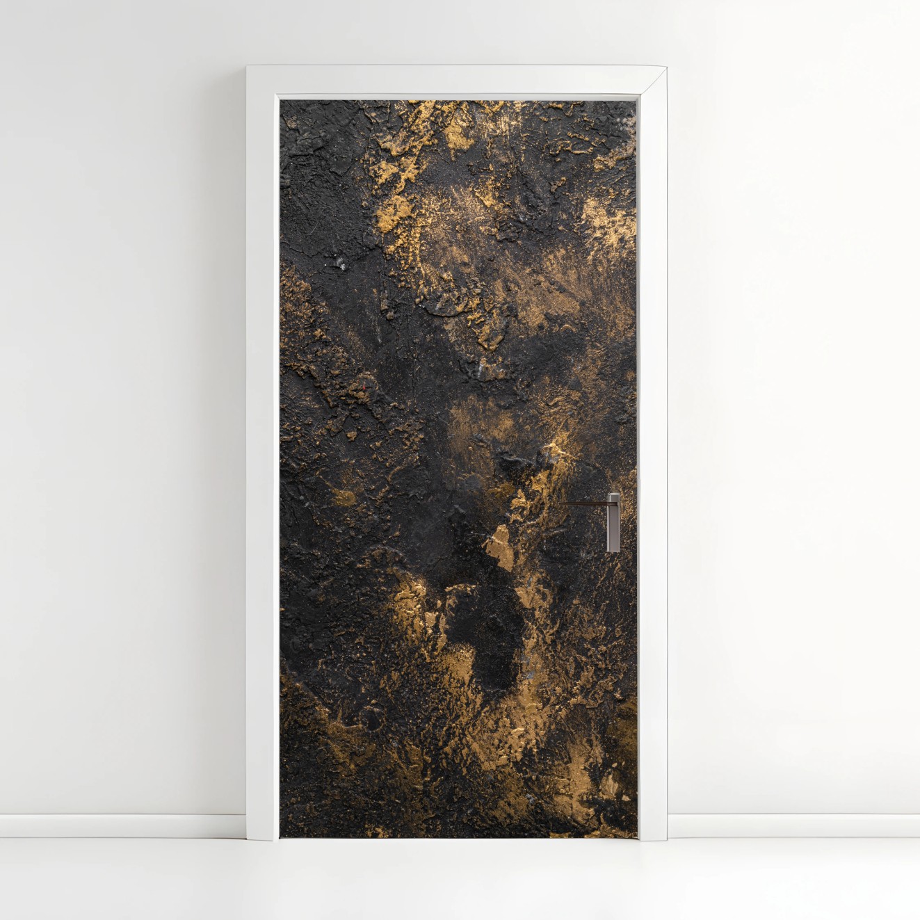 Naklejka na drzwi Czarno-złota teksturowana abstrakcja ścienna