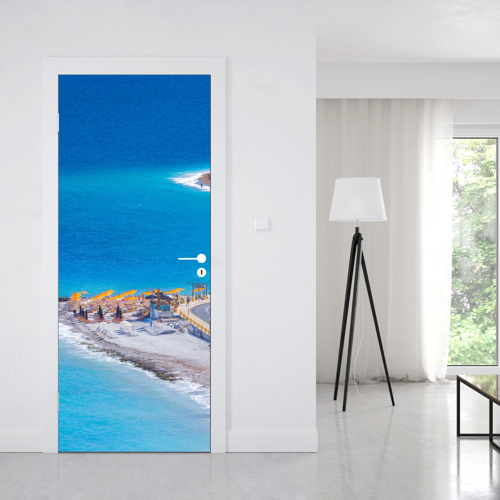 Naklejka na drzwi Rodos plaża z kolorowymi parasolami