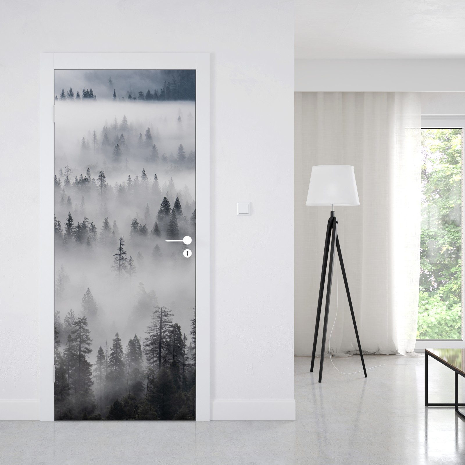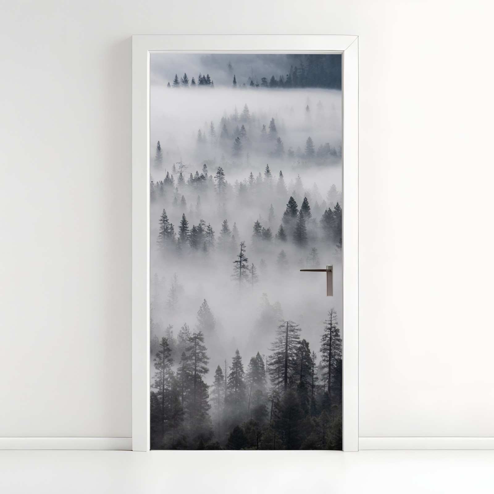 Naklejka na drzwi Mglisty las sosnowy