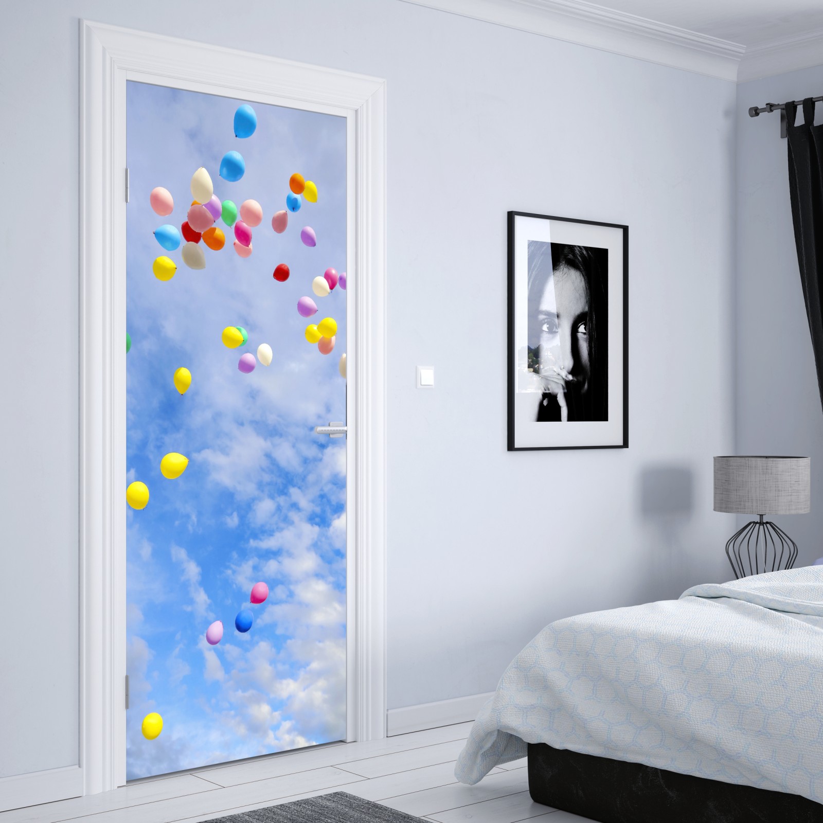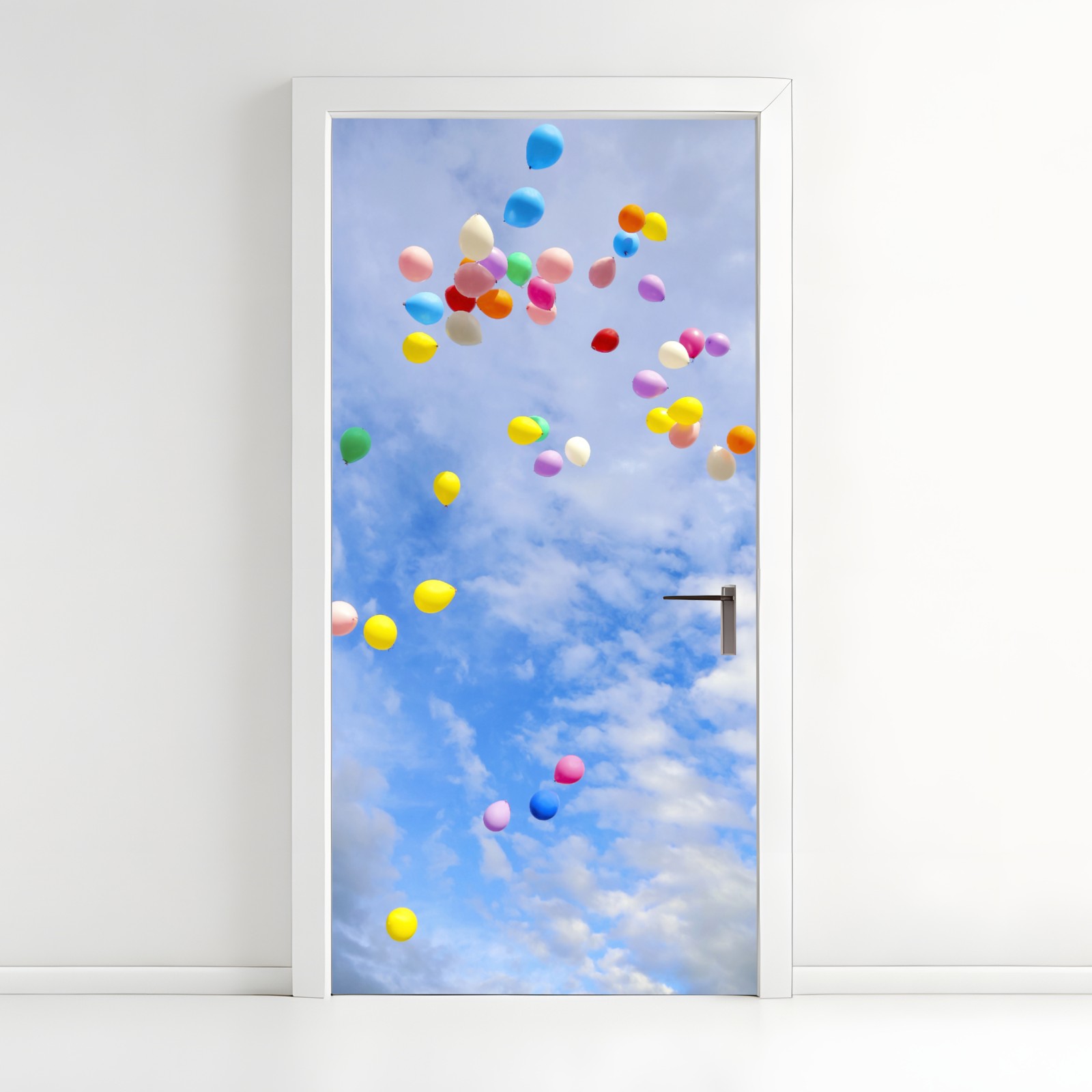 Naklejka na drzwi Kolorowe balony unoszące się w niebie
