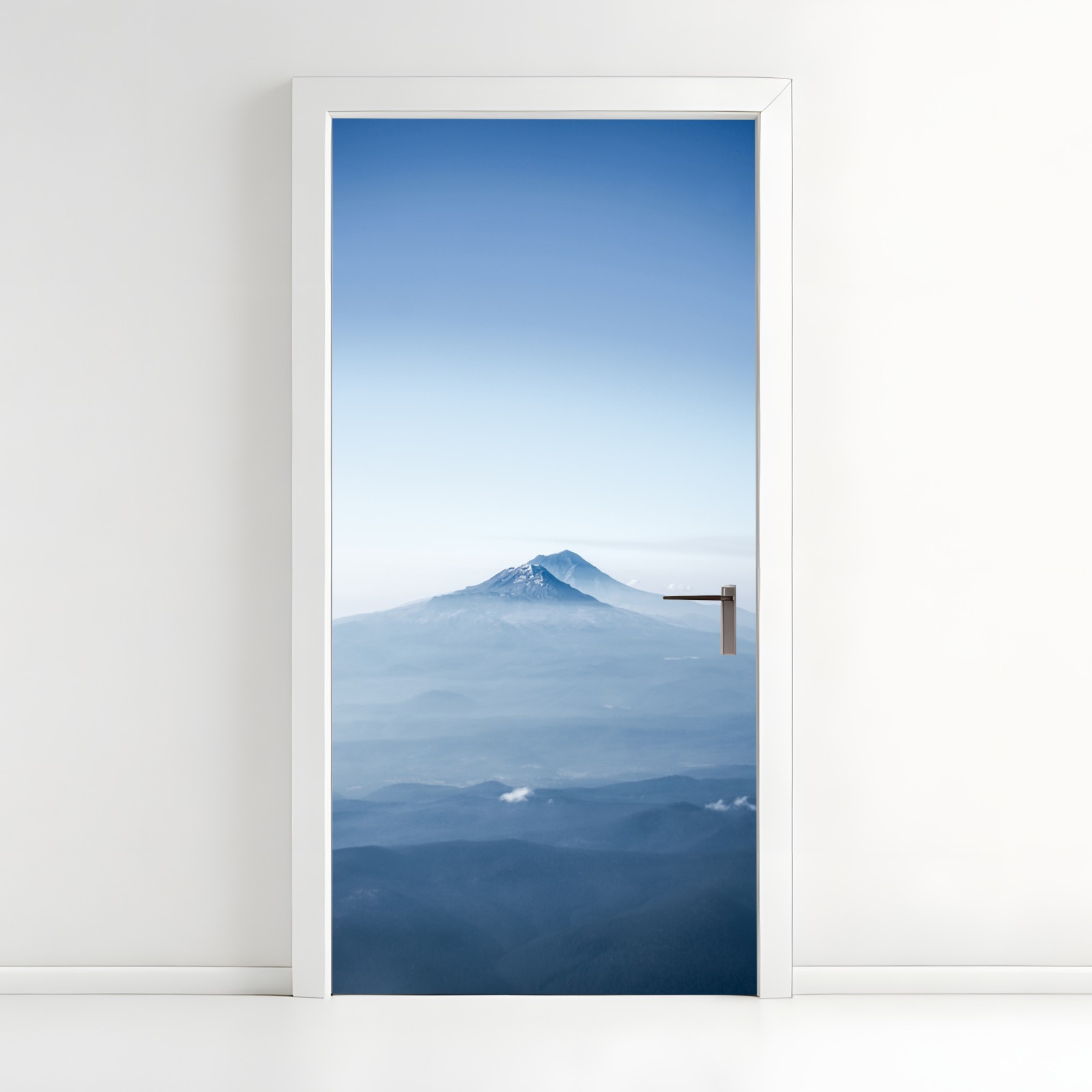 Naklejka na drzwi Mglisty niebieski szczyt górski