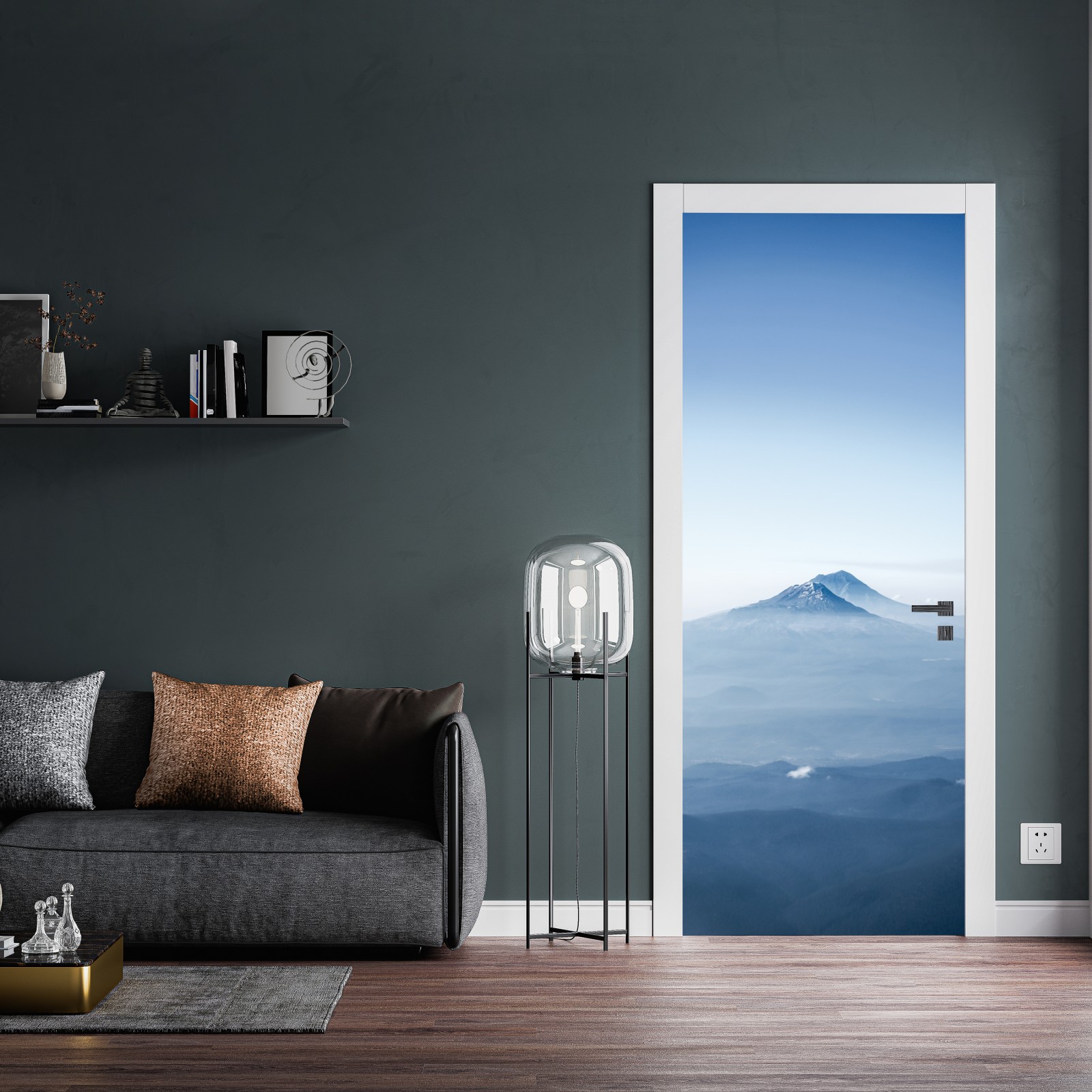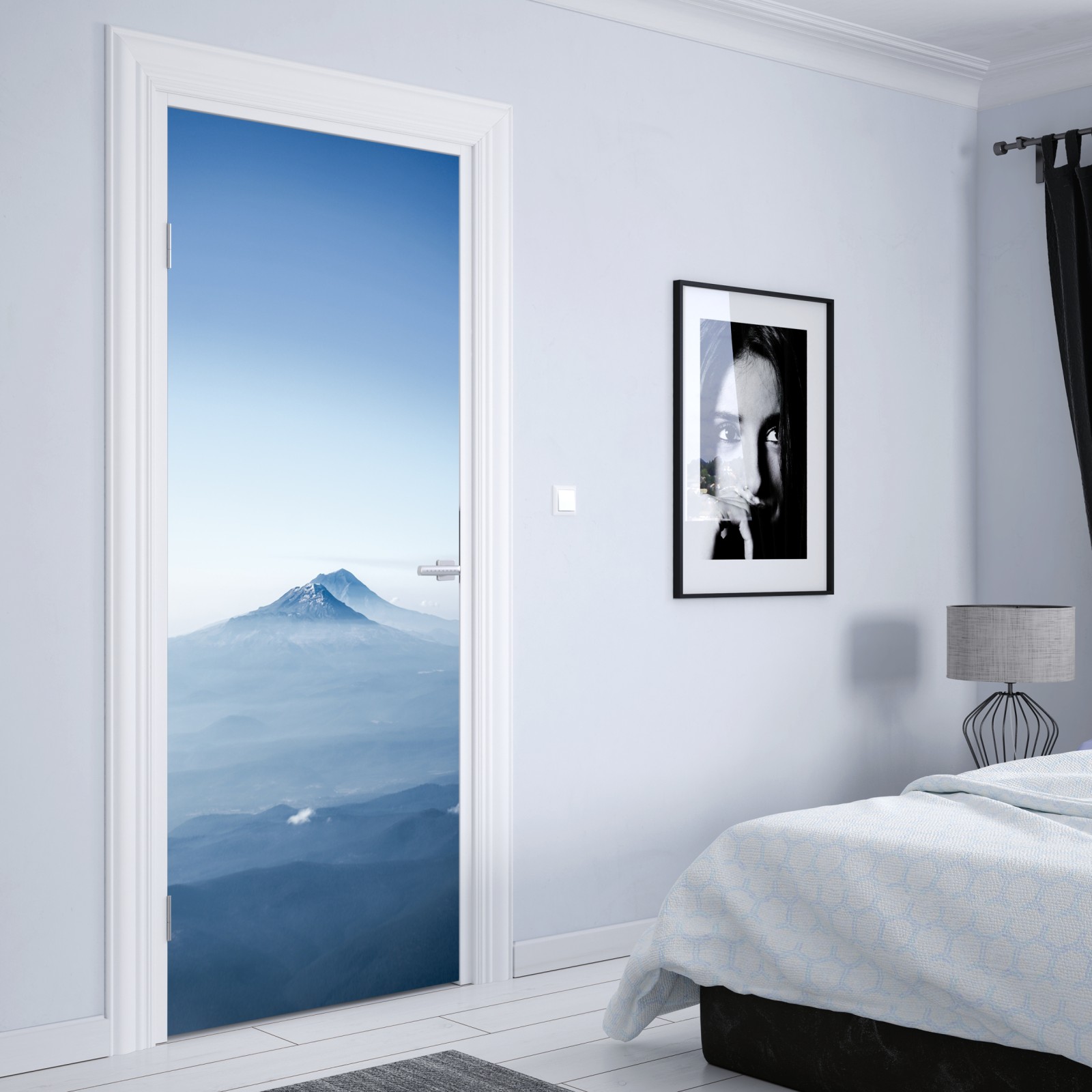 Wprowadź spokój i przestrzeń do wnętrza dzięki mglistemu niebieskiemu widokowi gór, który koi zmysły.