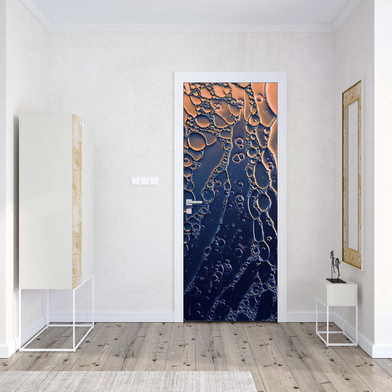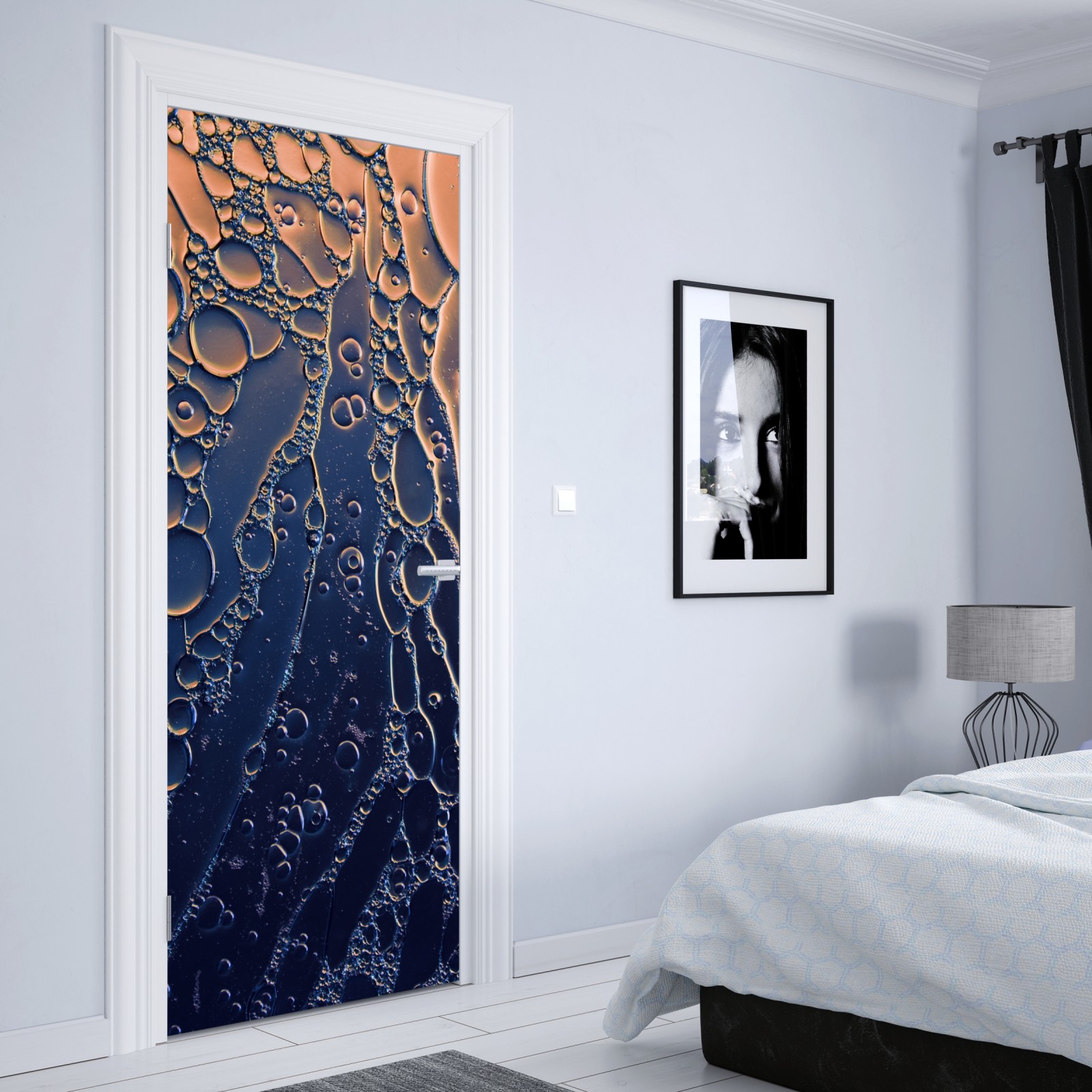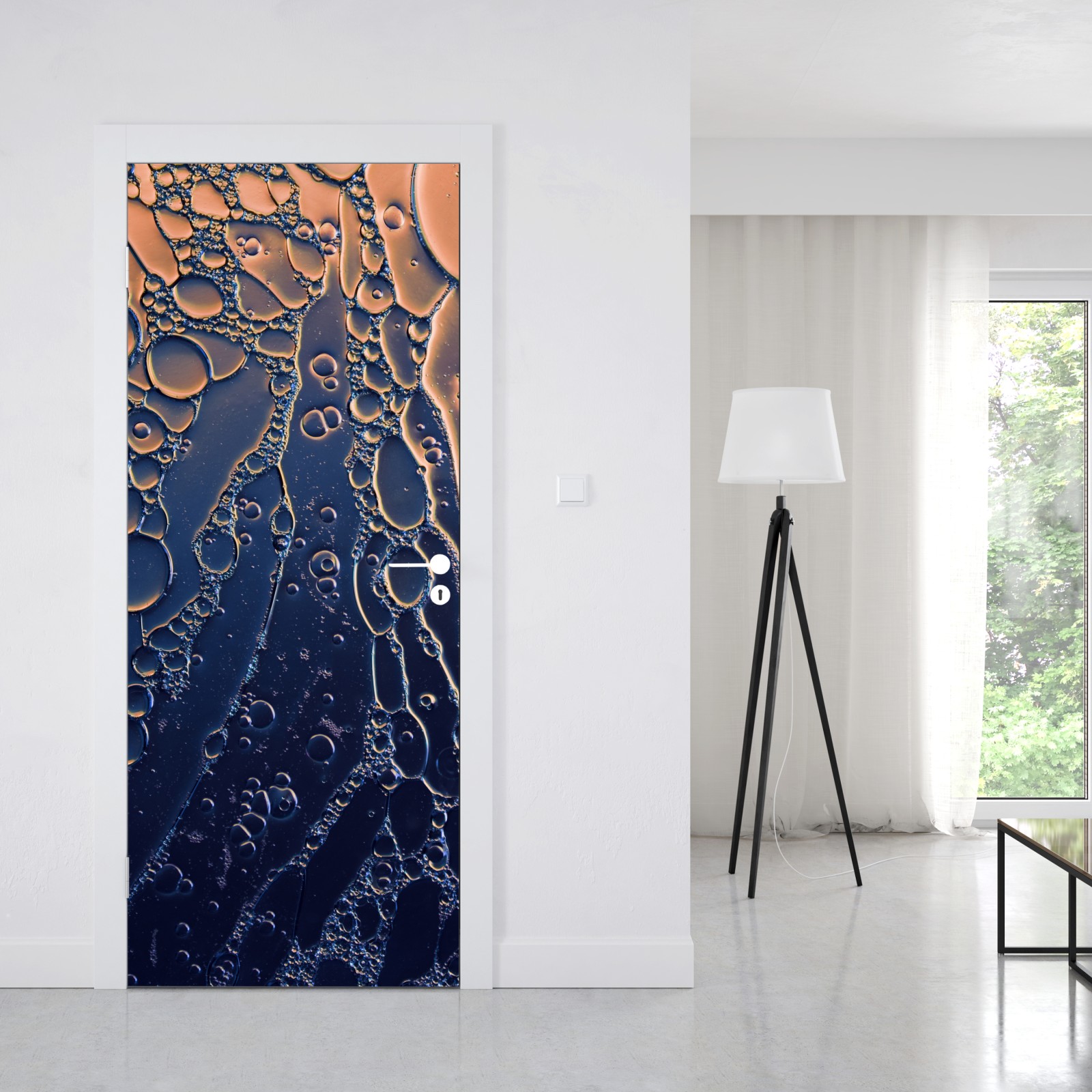 Naklejka na drzwi Niebiesko-złote abstrakcyjne bąbelki
