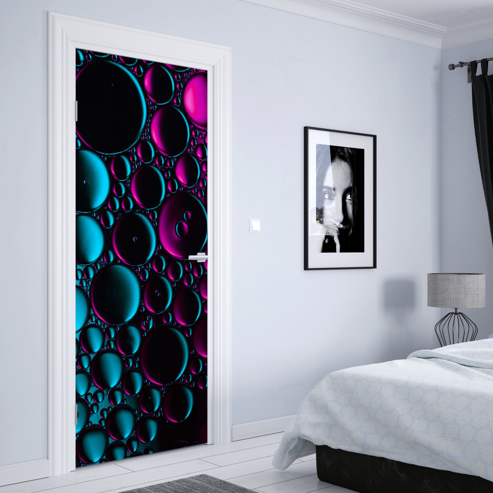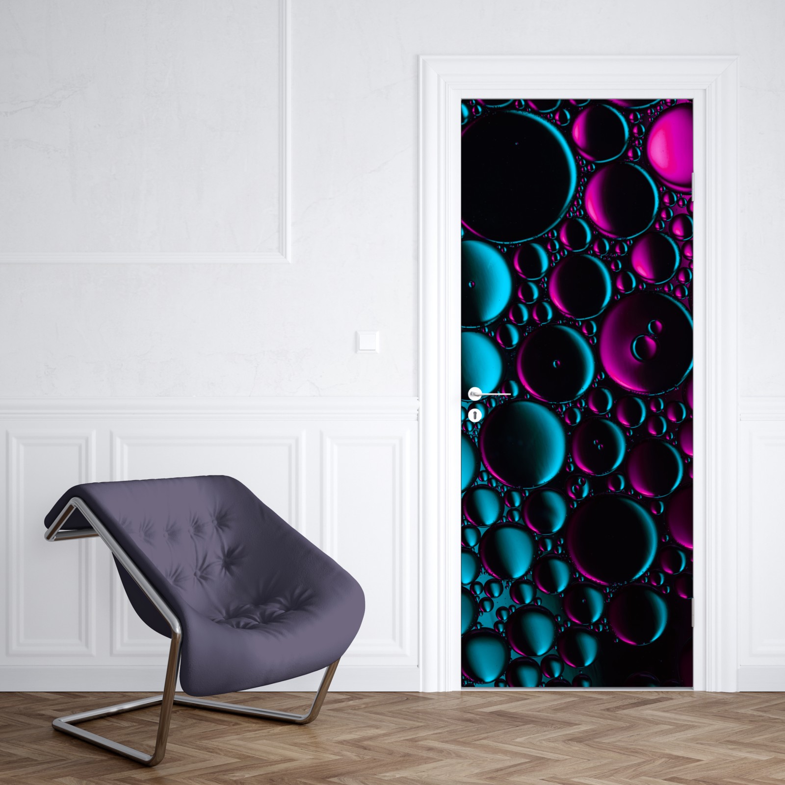 Naklejka na drzwi Turkusowo-magenta wzór bąbelków