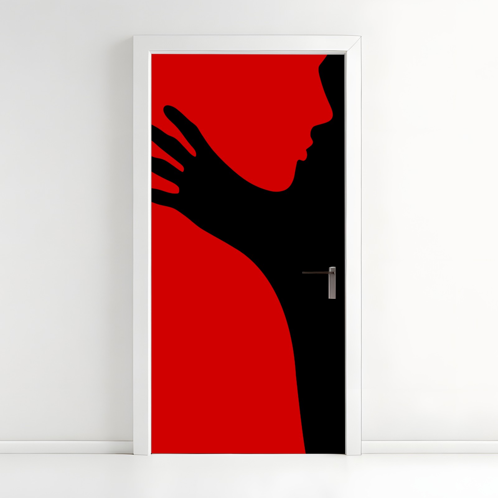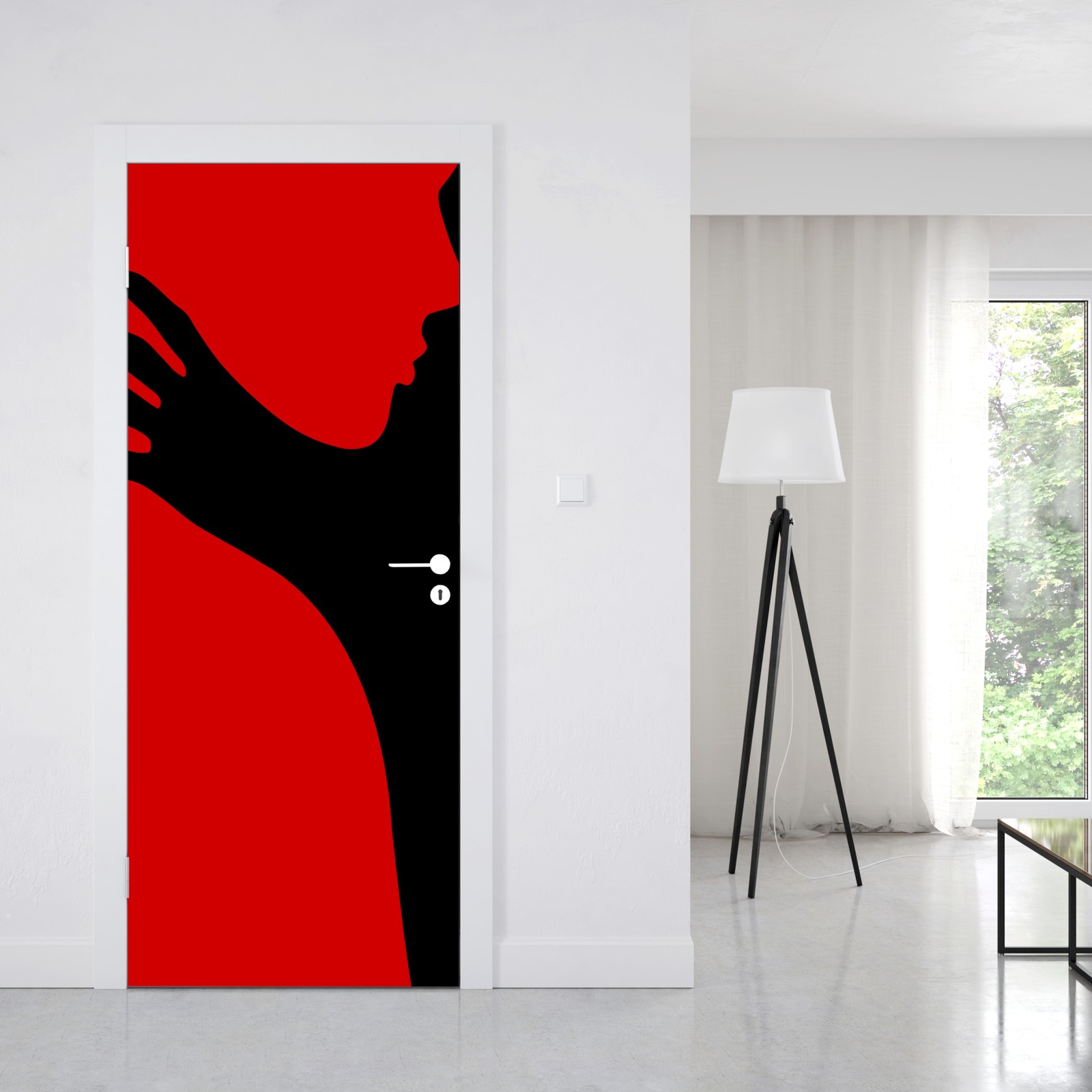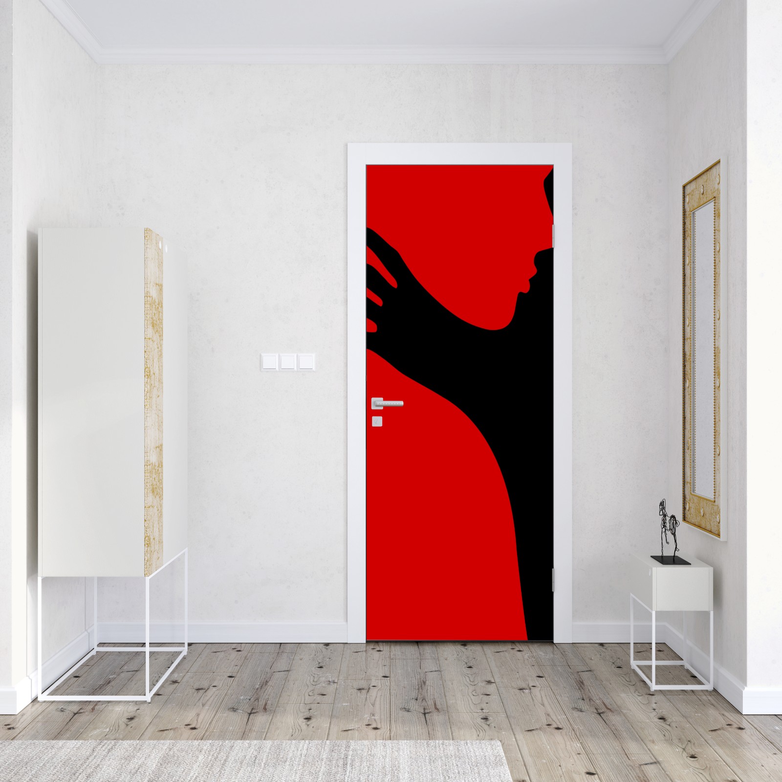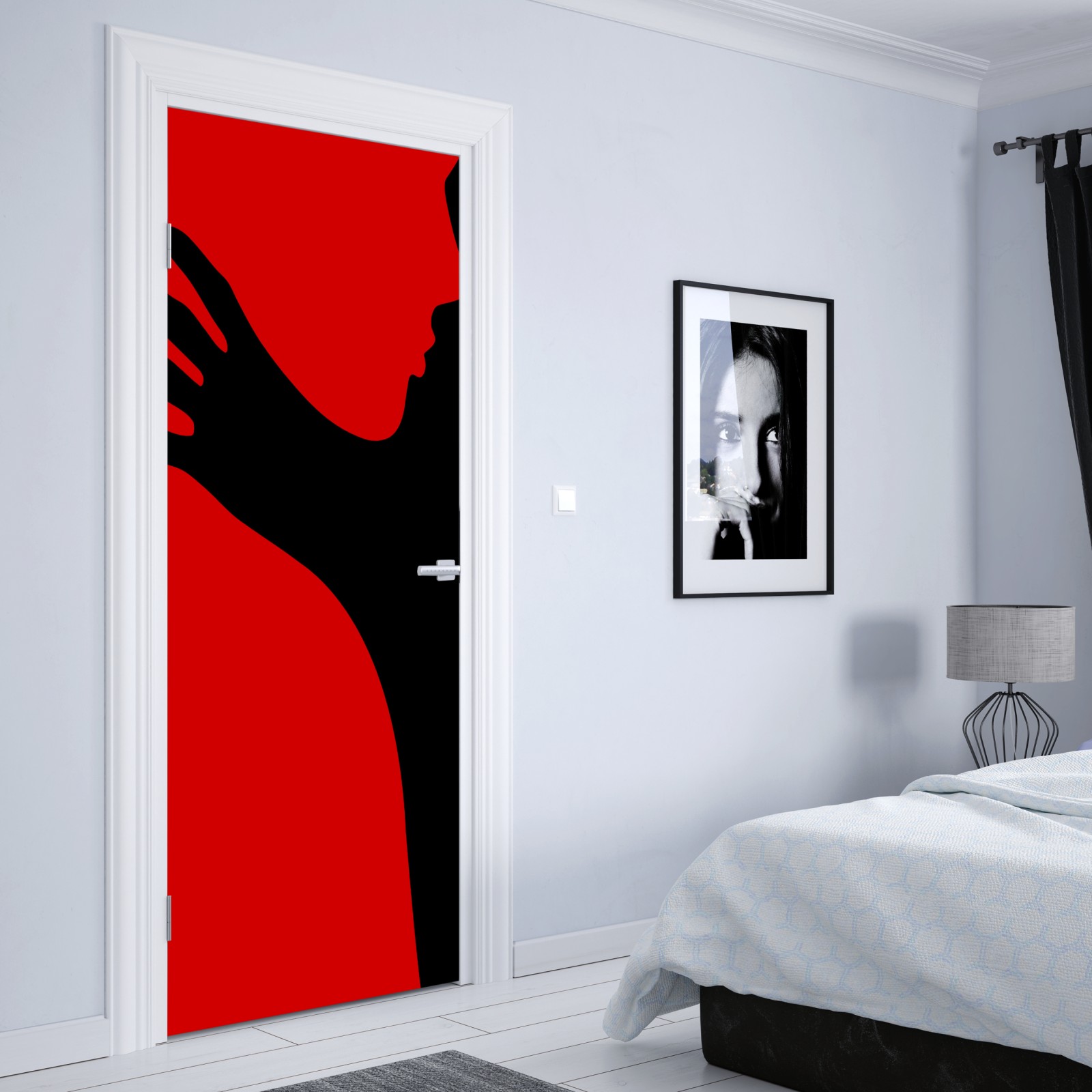Naklejka na drzwi Odważna czerwono-czarna sylwetka