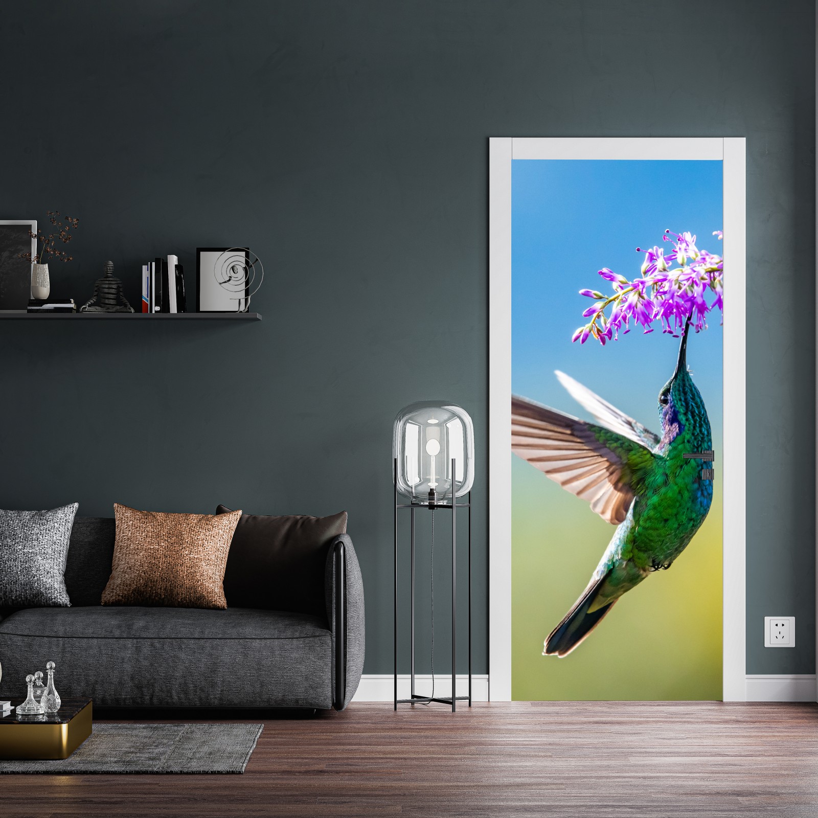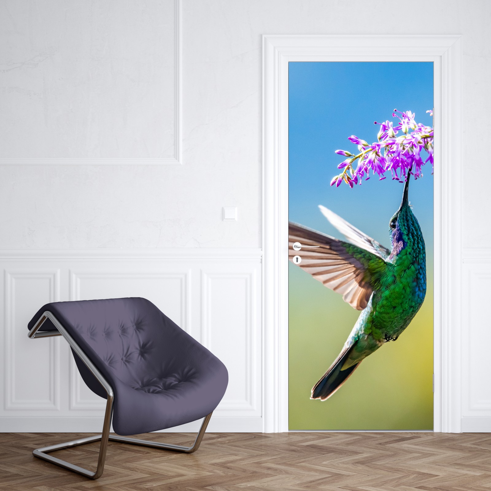 Naklejka na drzwi Koliber przy fioletowym kwiecie