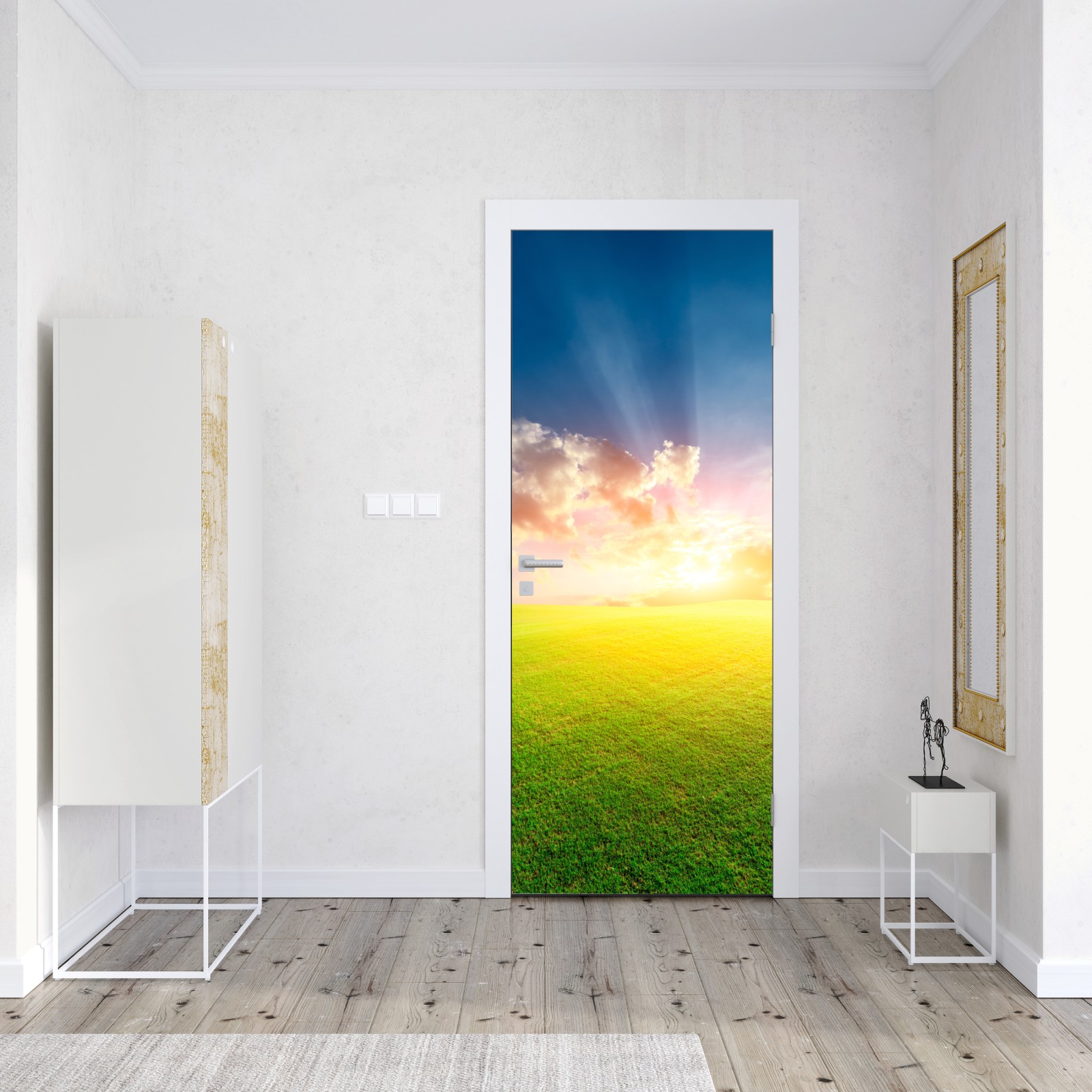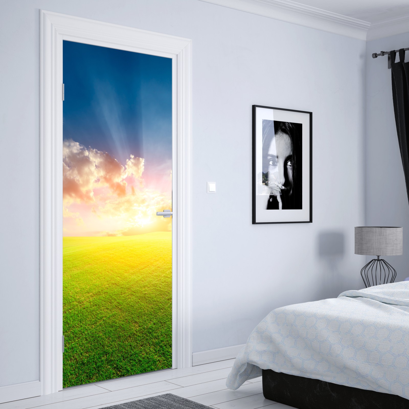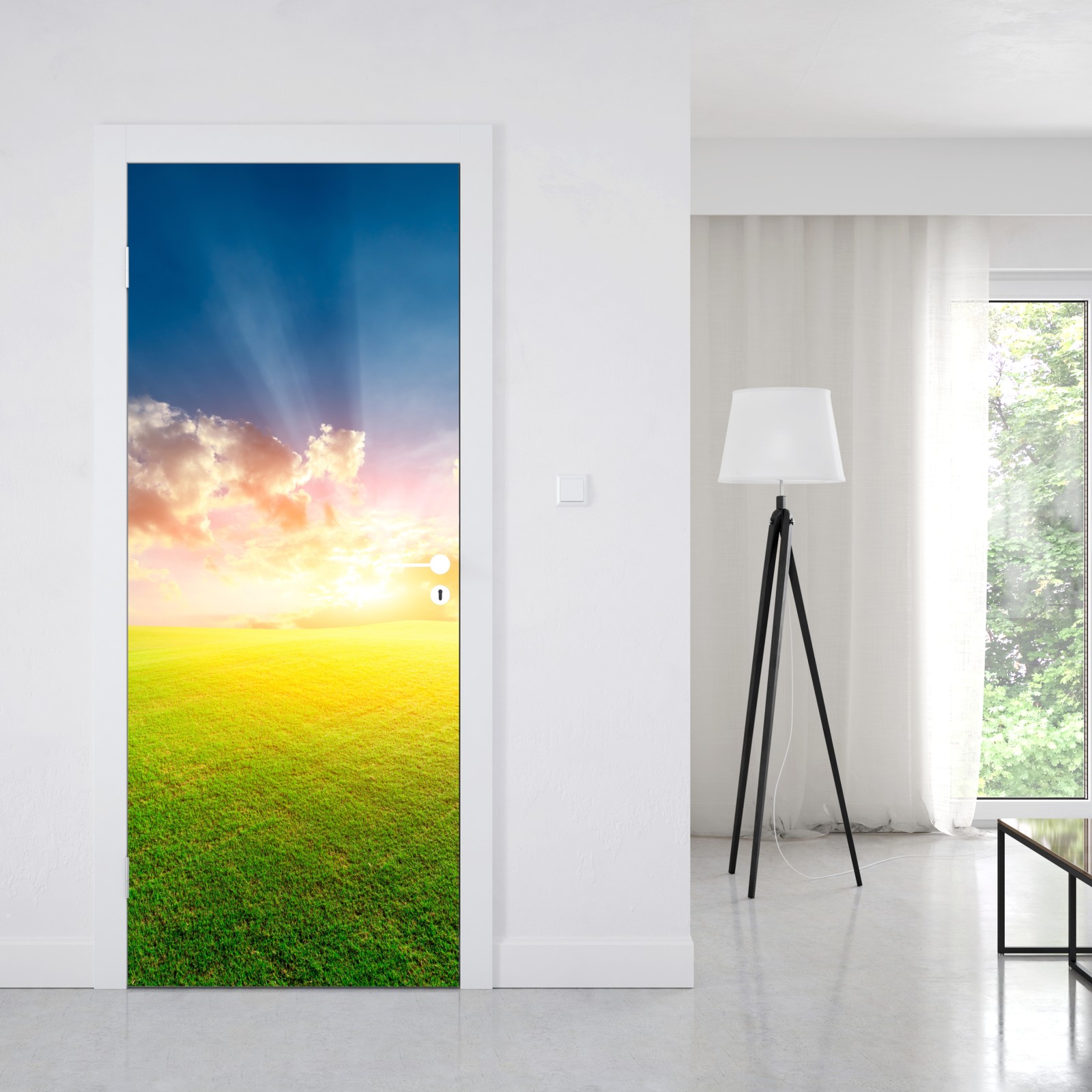 Naklejka na drzwi Słoneczna łąka o zmierzchu