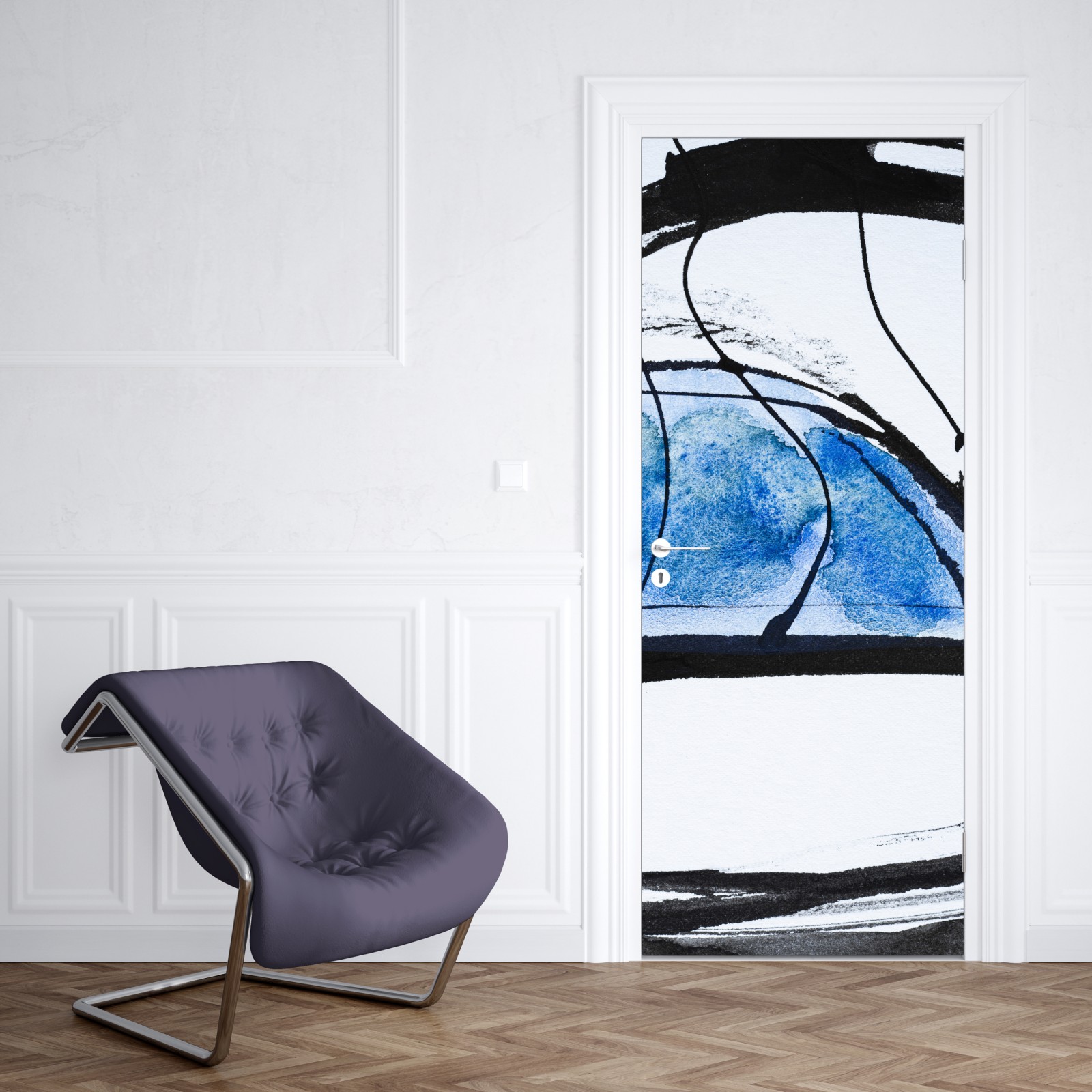 Naklejka na drzwi Niebieska abstrakcja tuszem i akwarelą
