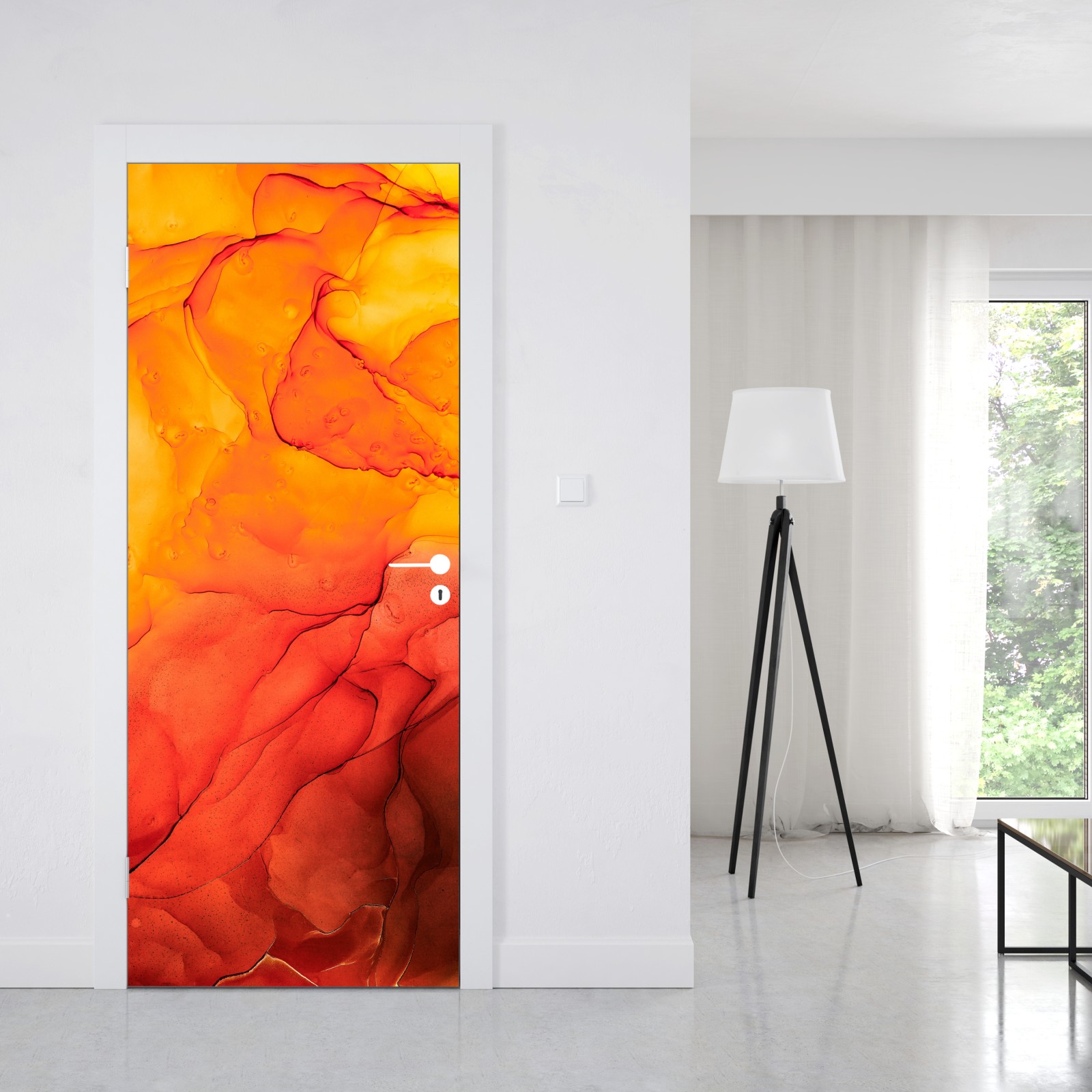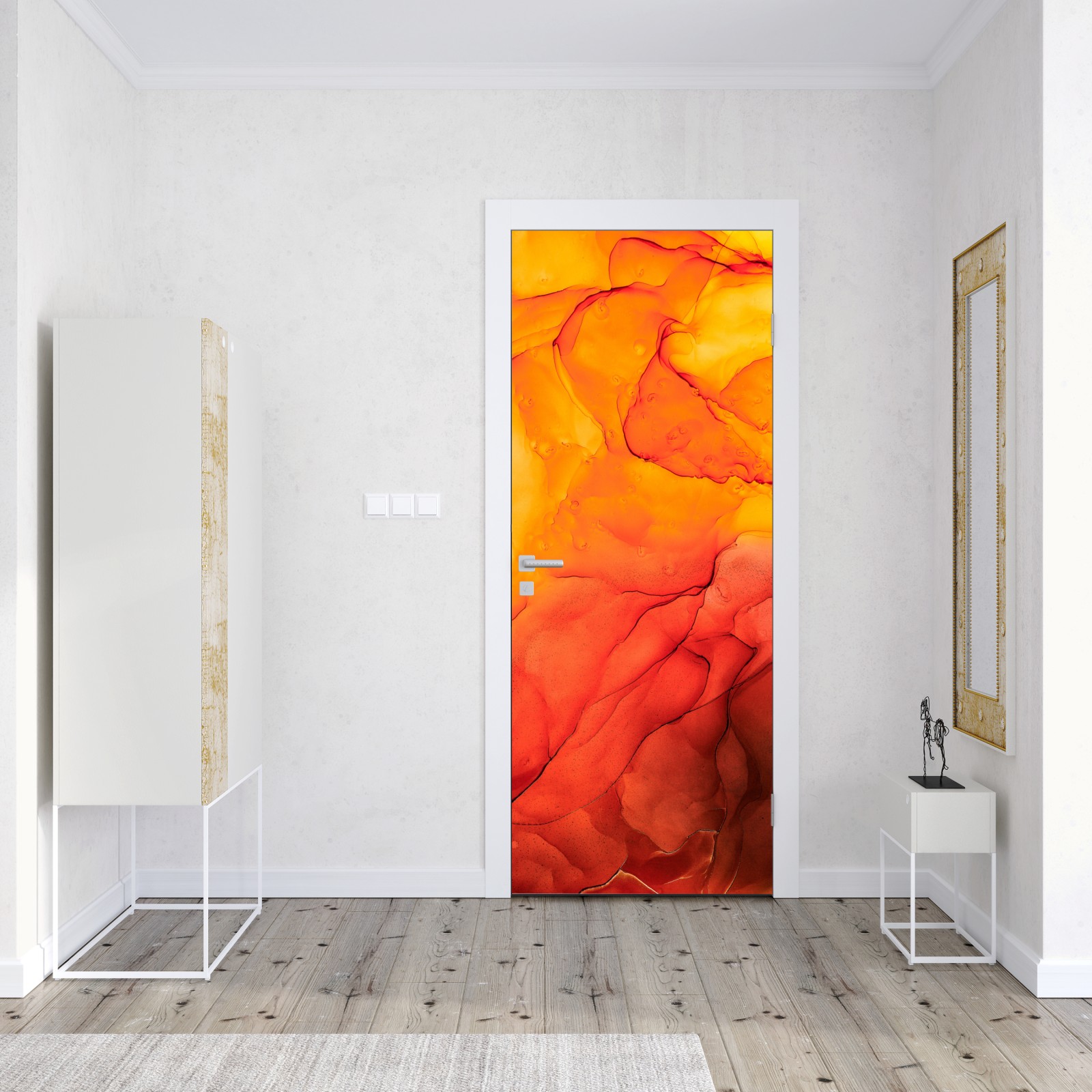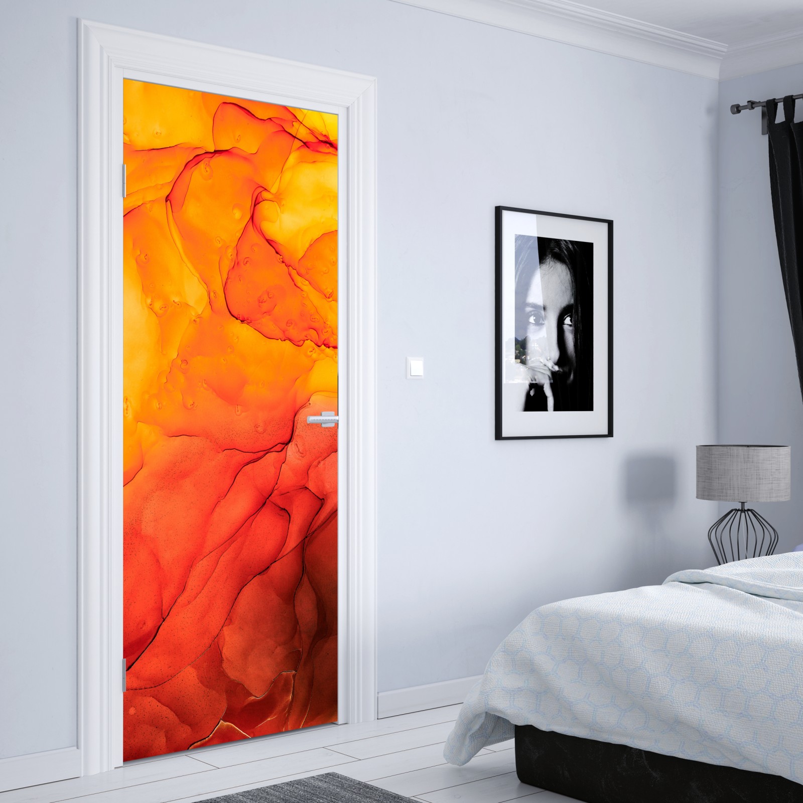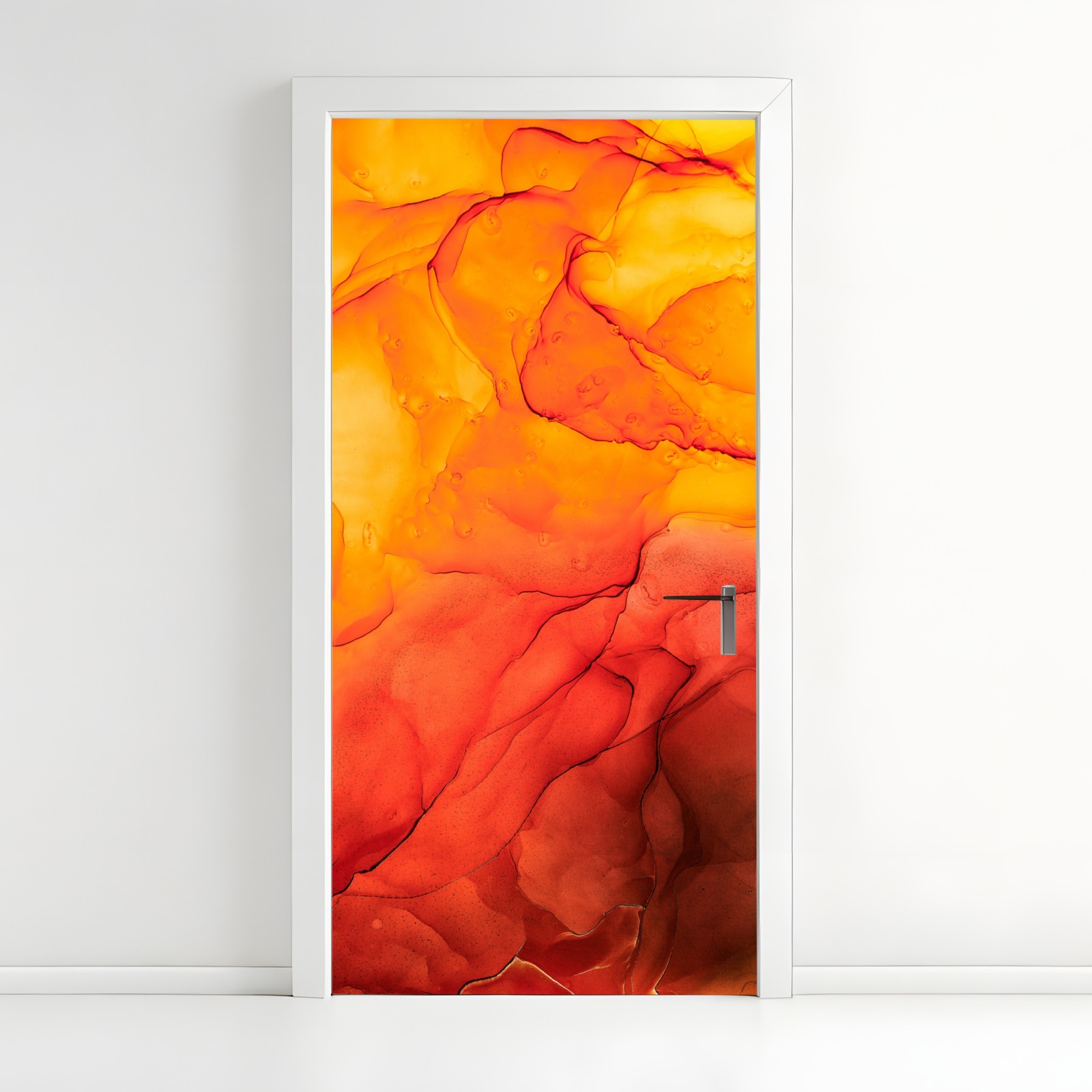 Naklejka na drzwi Abstrakcja alkoholowa w odcieniach pomarańczy