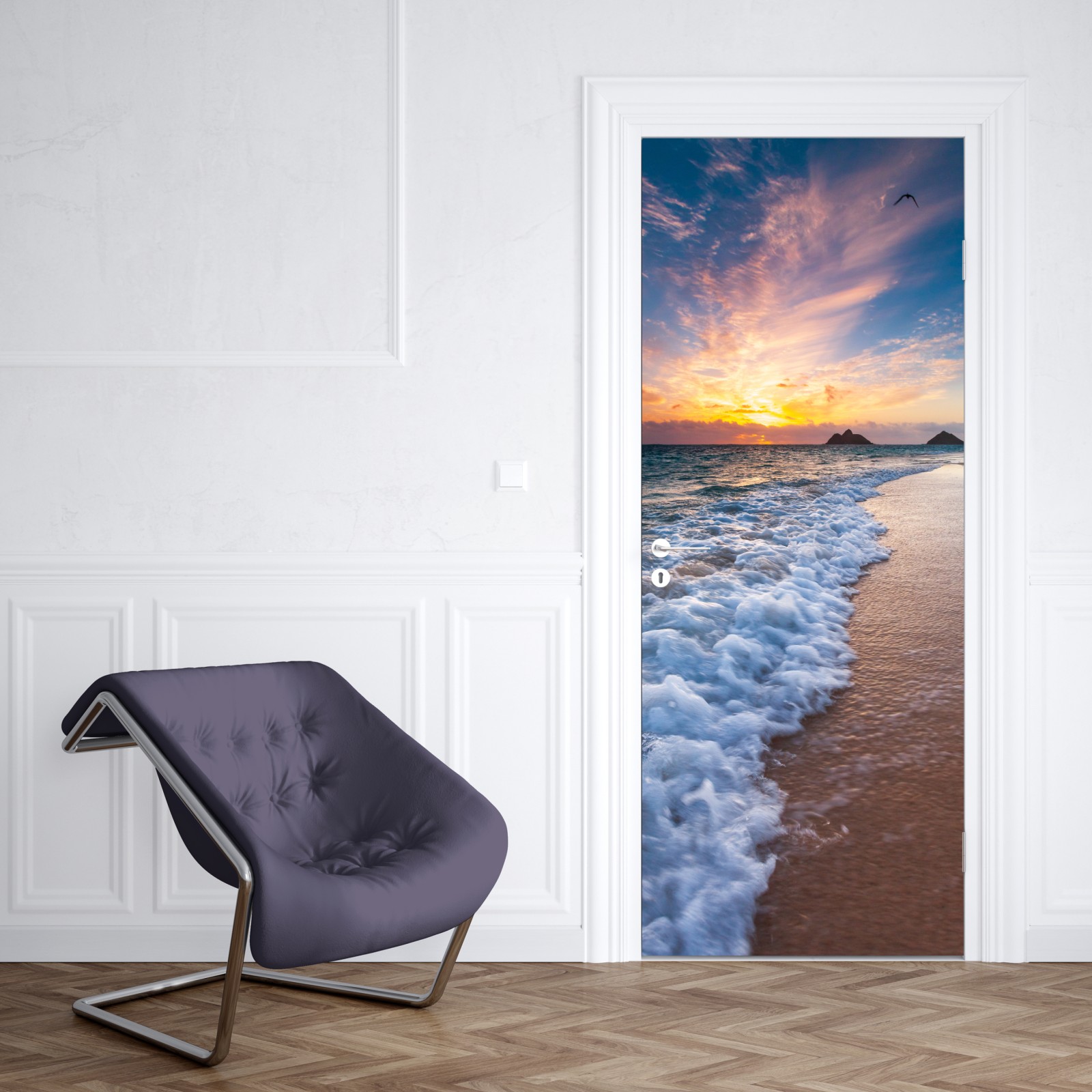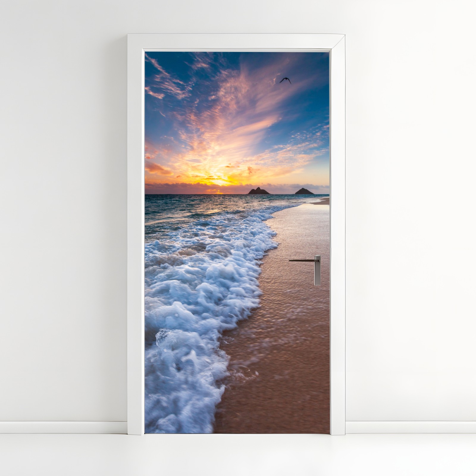 Naklejka na drzwi Spokojny wschód słońca nad brzegiem oceanu