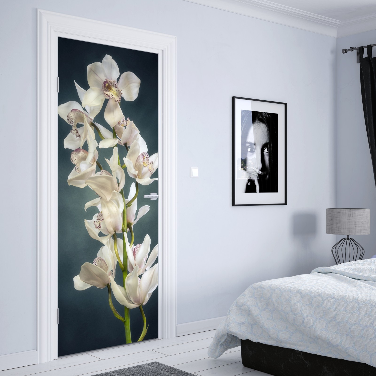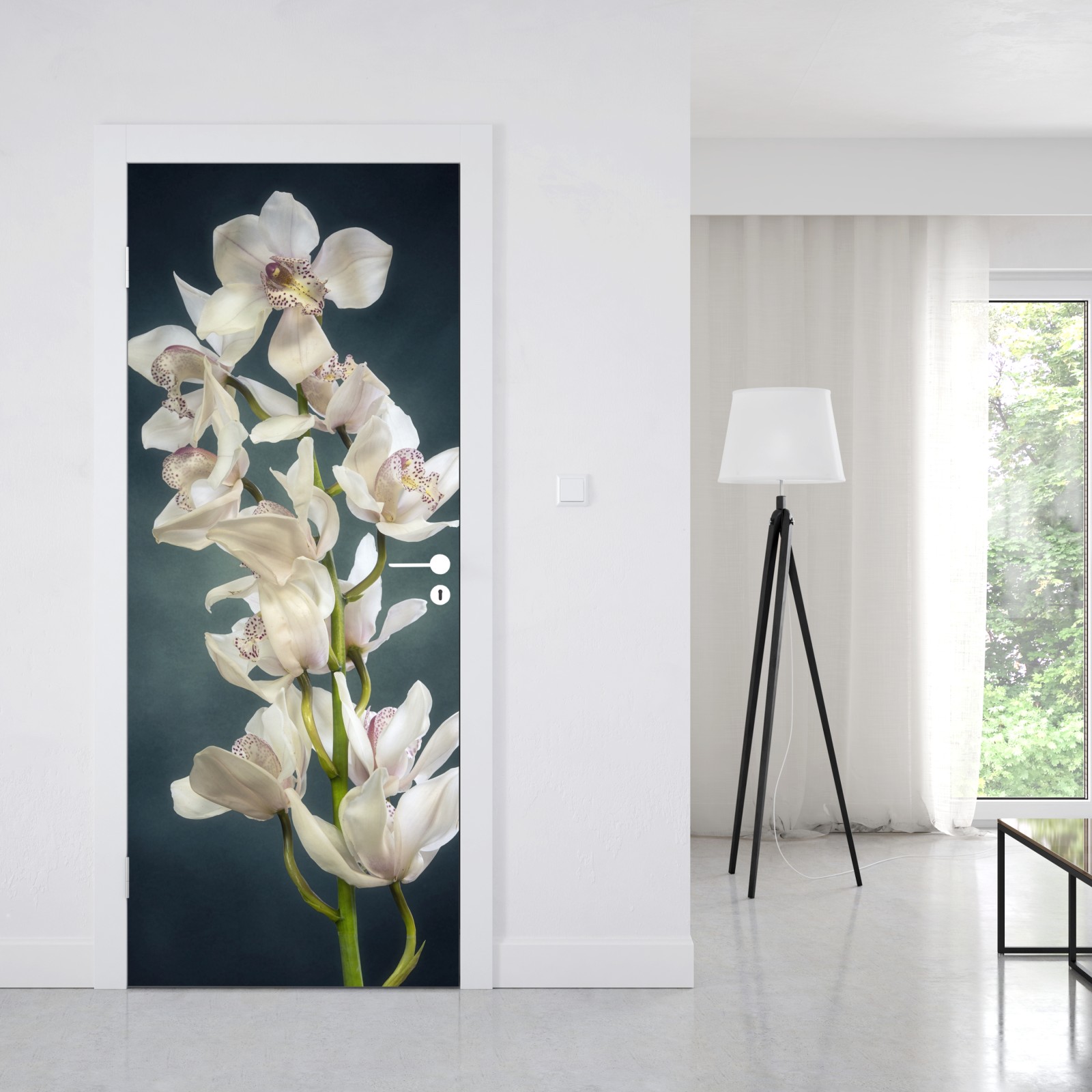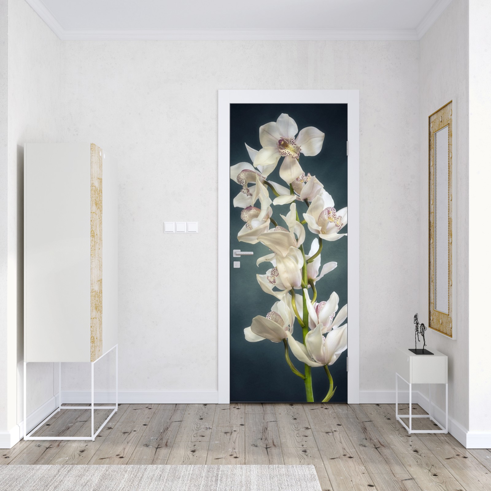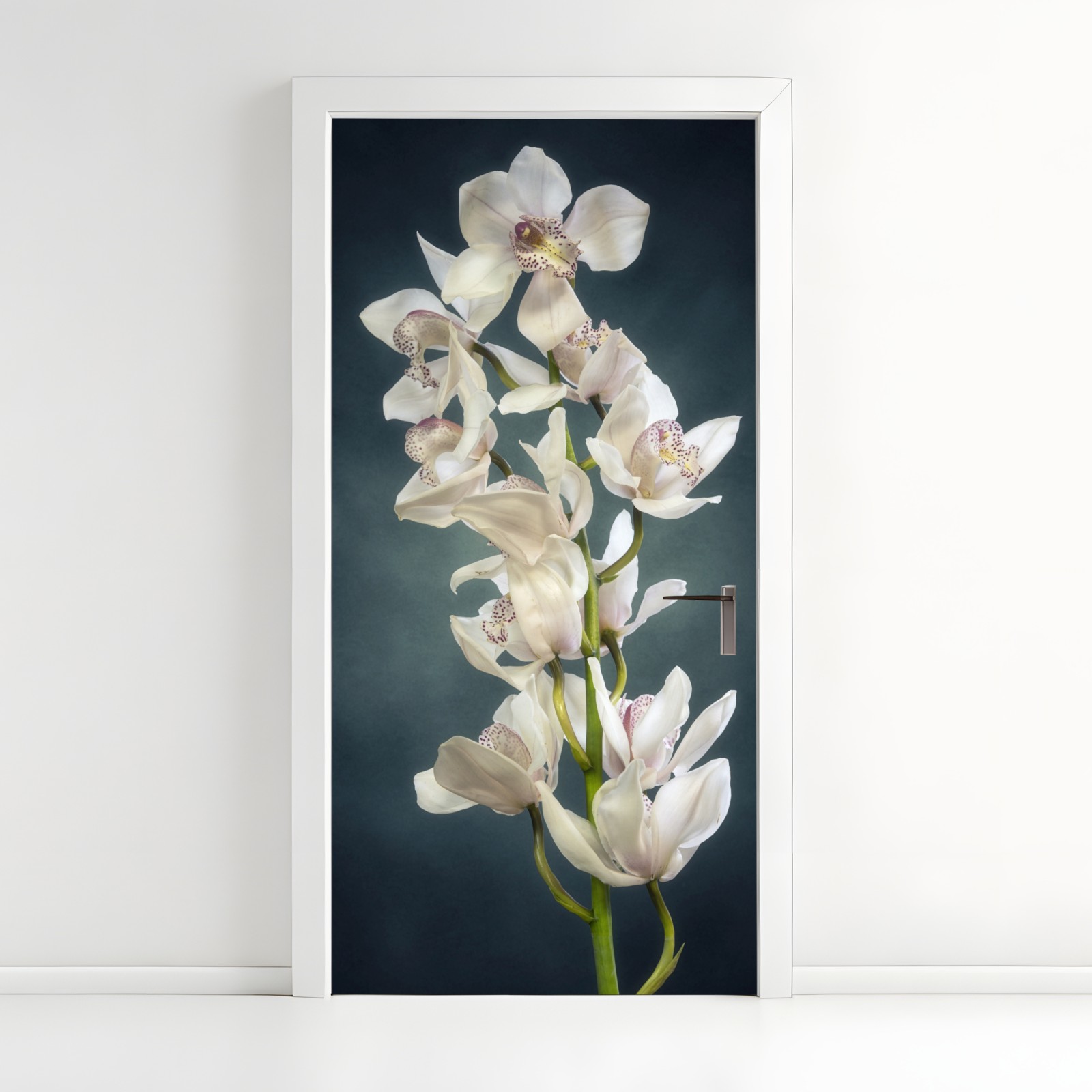 Naklejka na drzwi Delikatne białe storczyki na stonowanym tle
