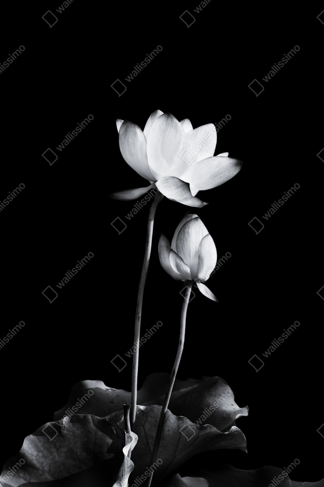 Elegancki czarno-biały obraz lotosu wnosi spokój i minimalistyczne piękno do każdego wnętrza.