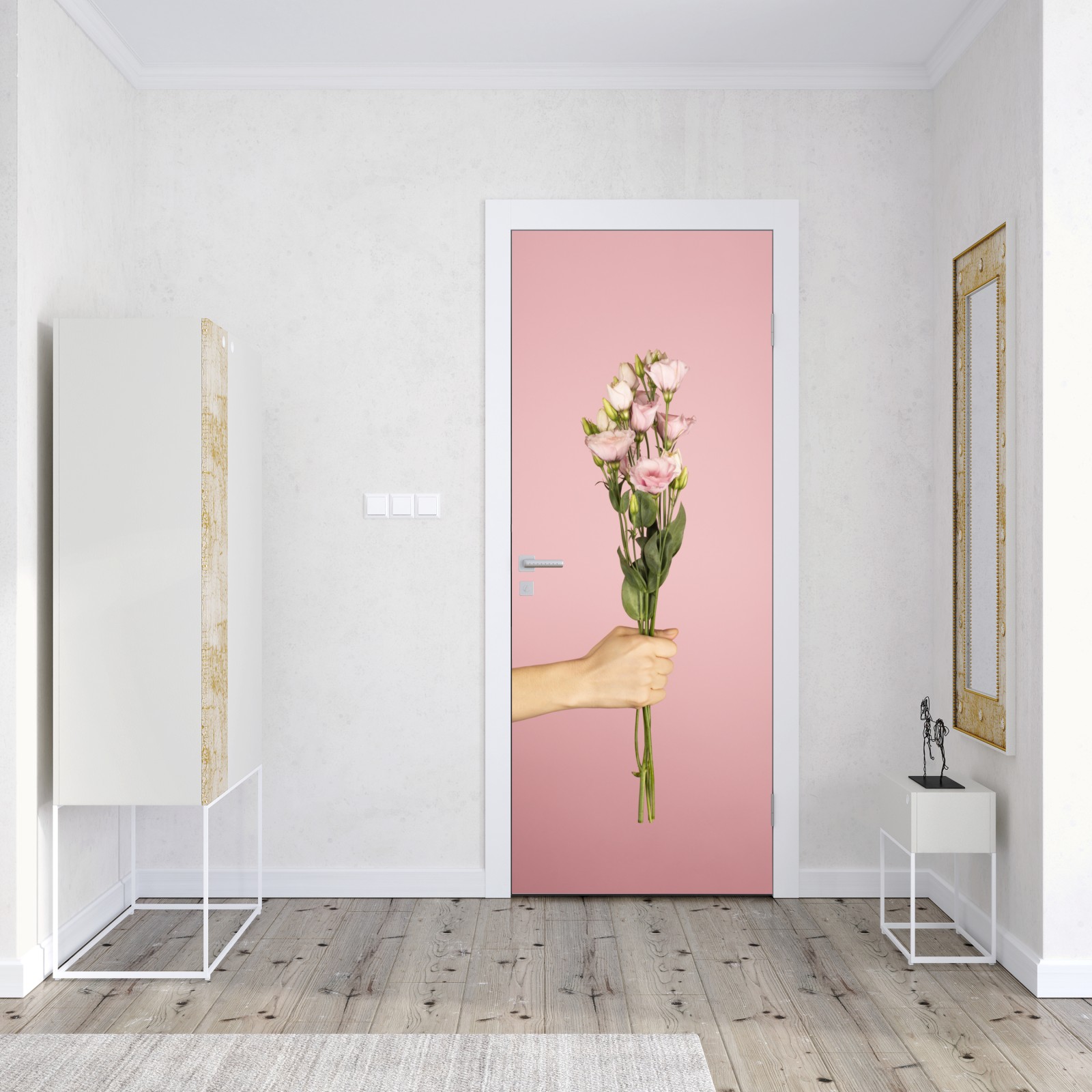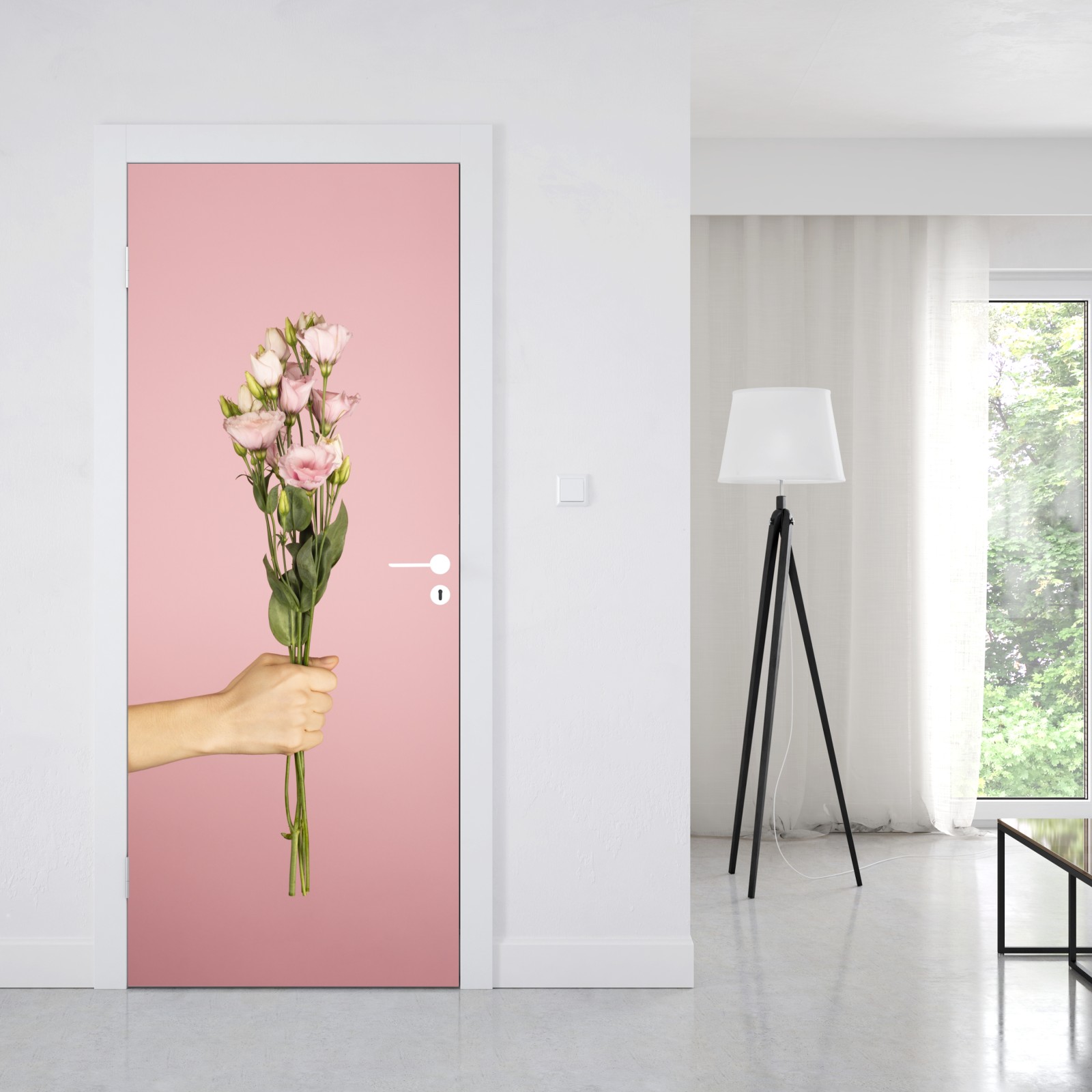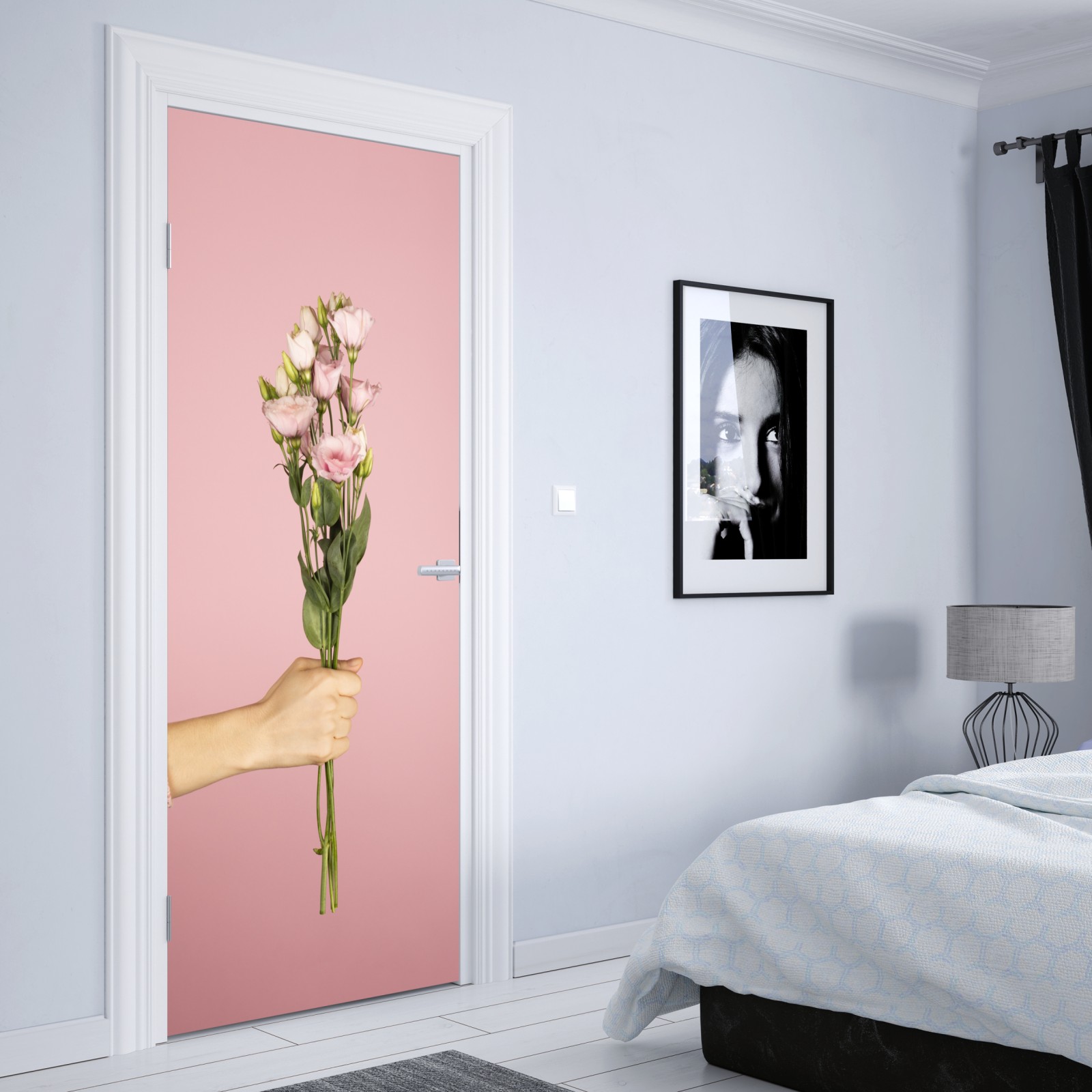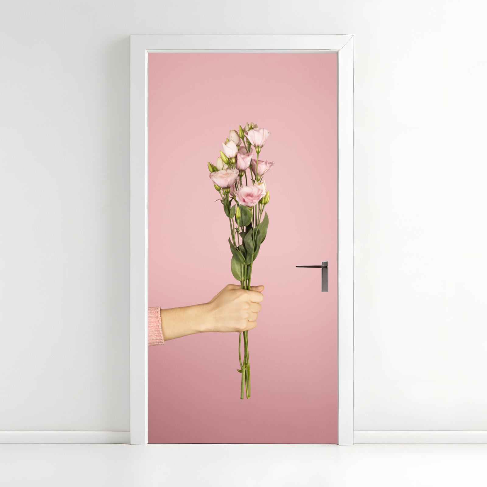 Naklejka na drzwi Delikatny różowy bukiet eustomy