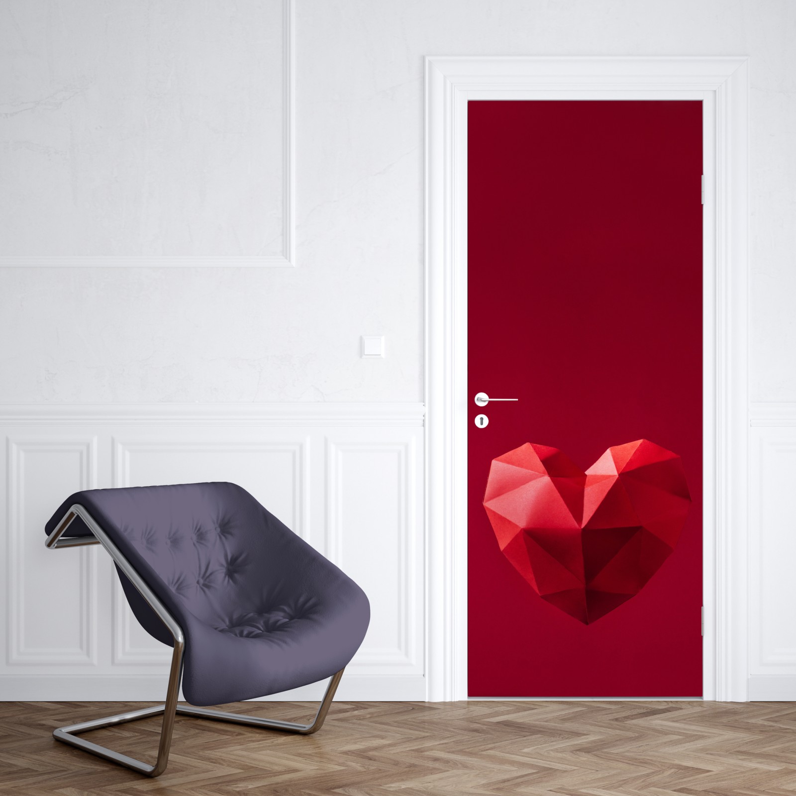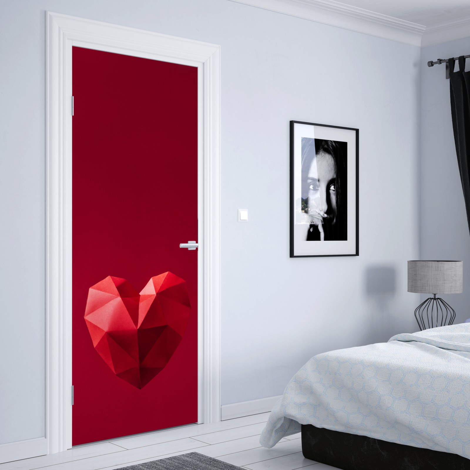 Naklejka na drzwi Geometryczne czerwone papierowe serce