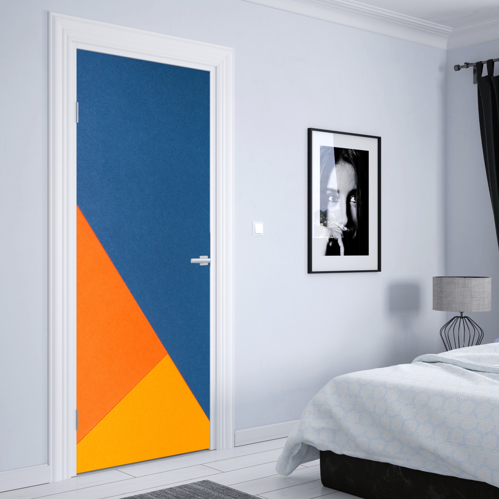 Naklejka na drzwi Odważna kompozycja geometryczna w niebieskim i pomarańczowym