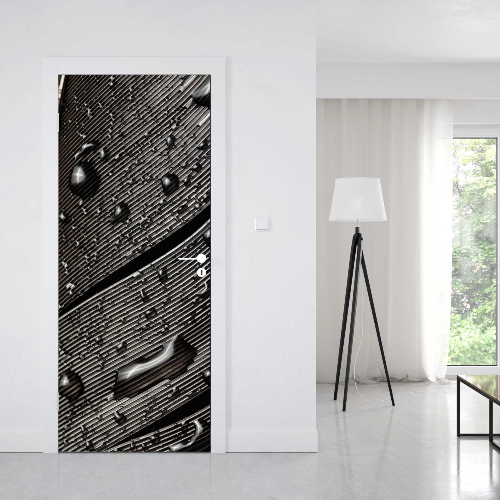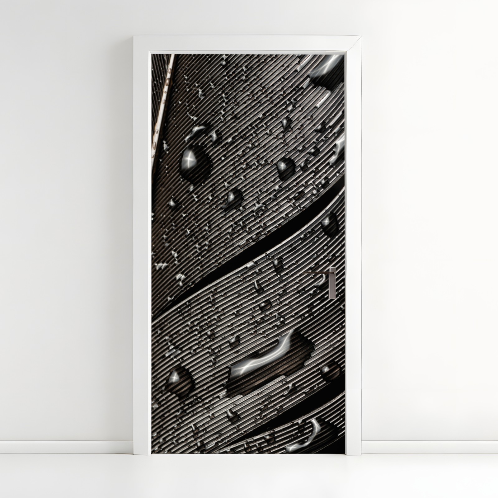 Naklejka na drzwi Czarno-białe pióro z kroplami wody