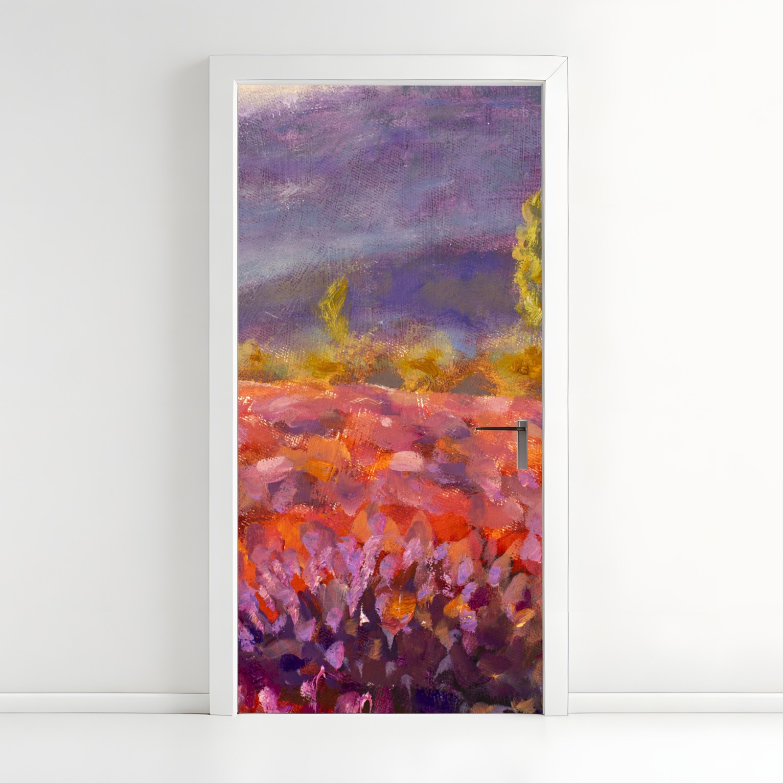 Naklejka na drzwi Prowansja pole lawendy obraz olejny