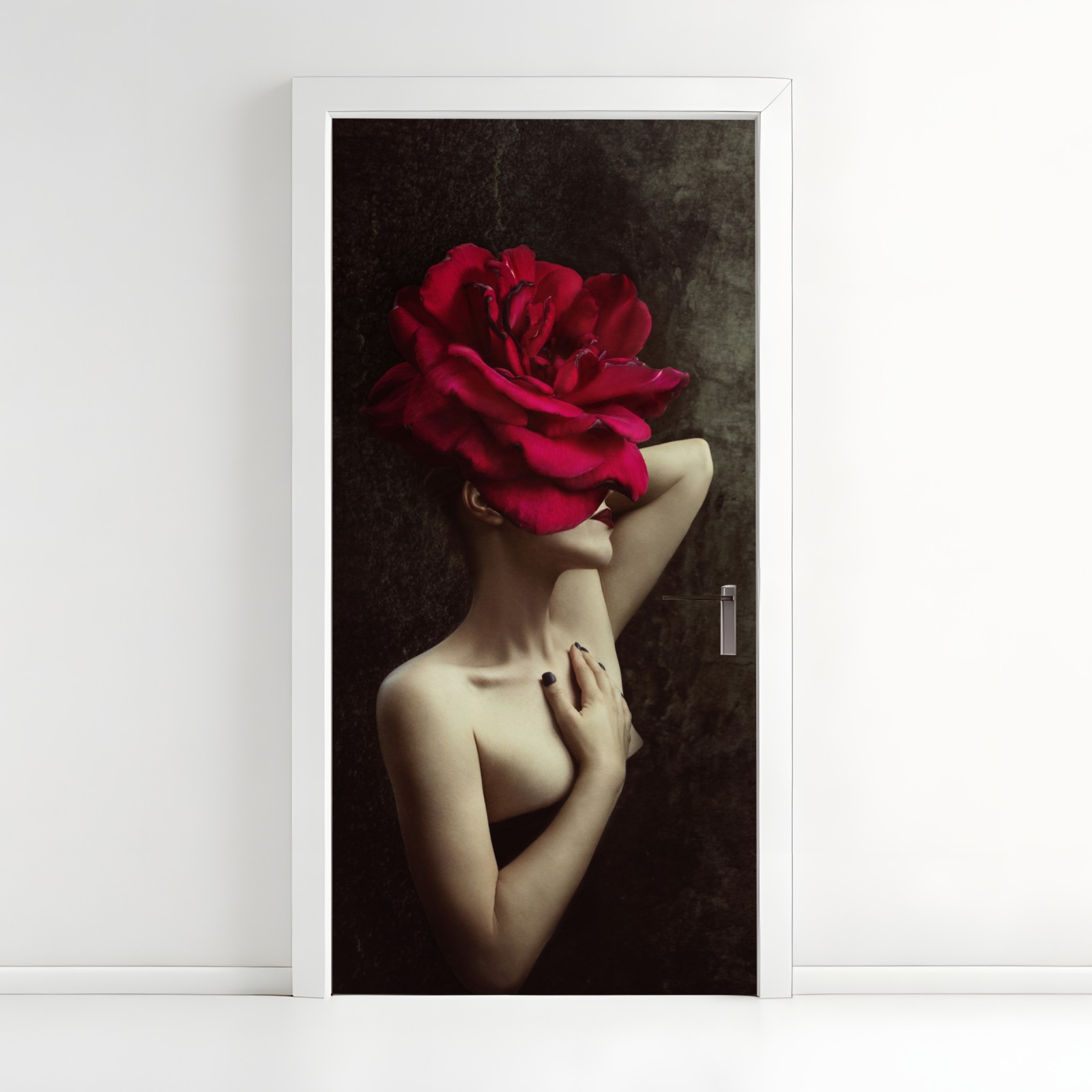Naklejka na drzwi Kobieta z głową z róży surrealistyczny portret