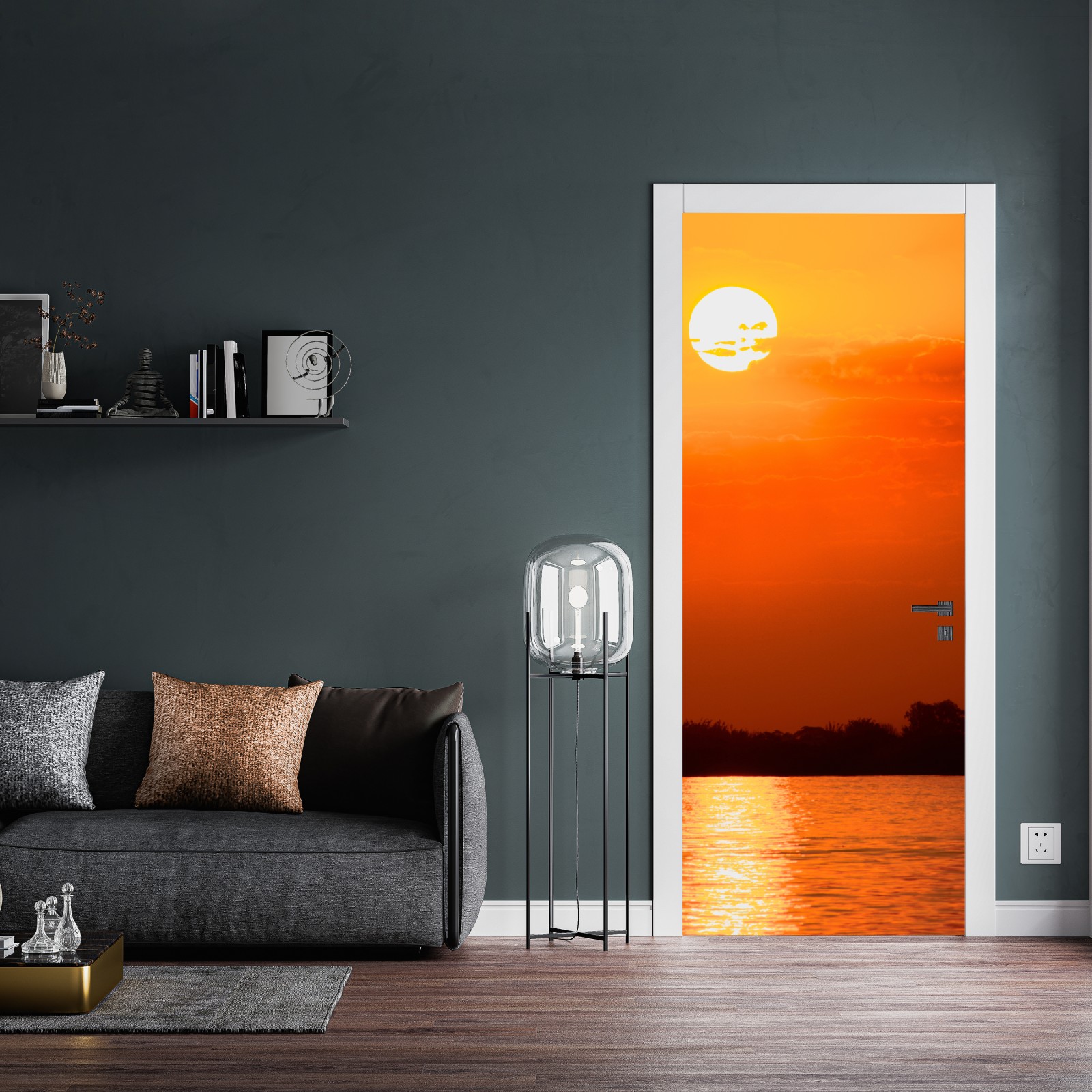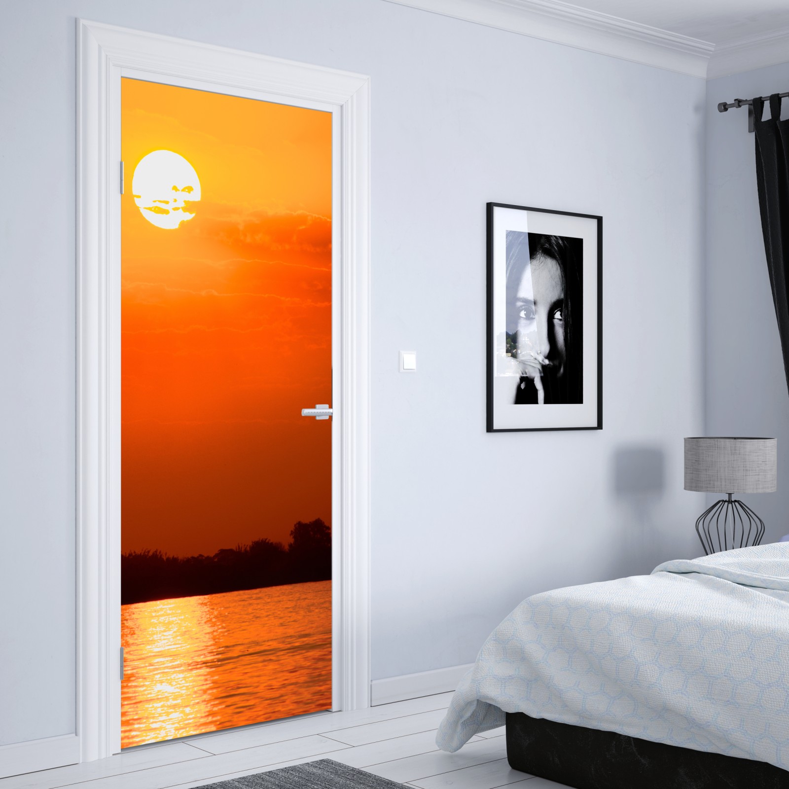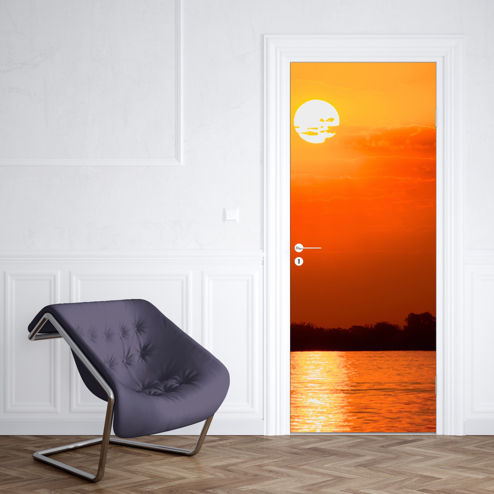 Naklejka na drzwi Złoty zachód słońca nad spokojnym jeziorem