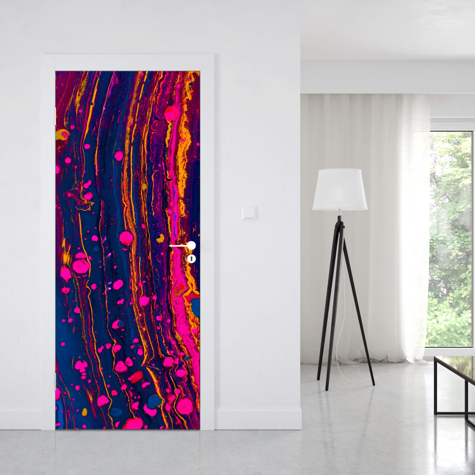 Naklejka na drzwi Neonowa marmurkowa grafika abstrakcyjna