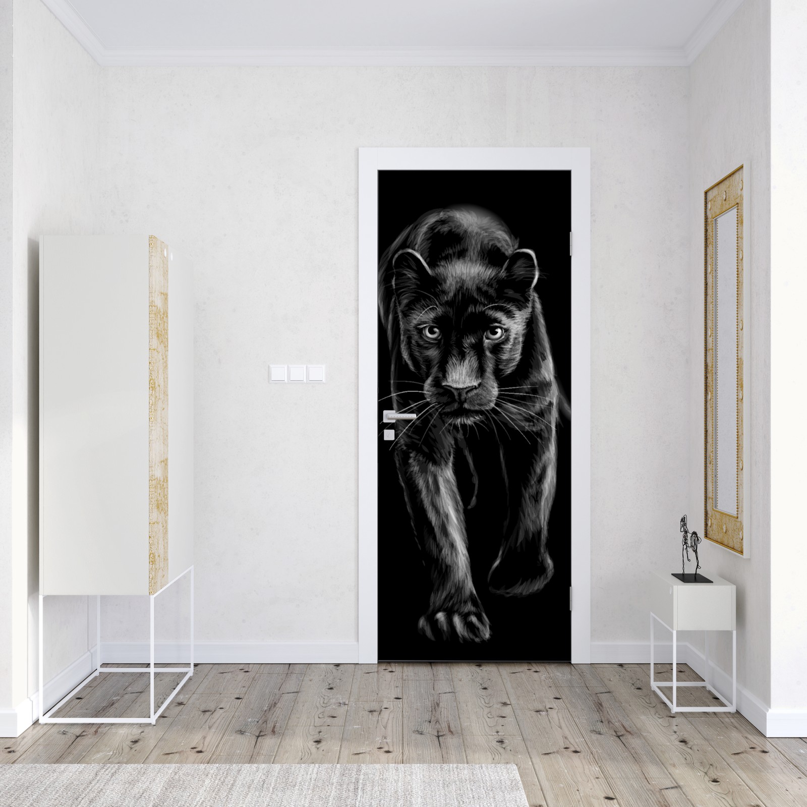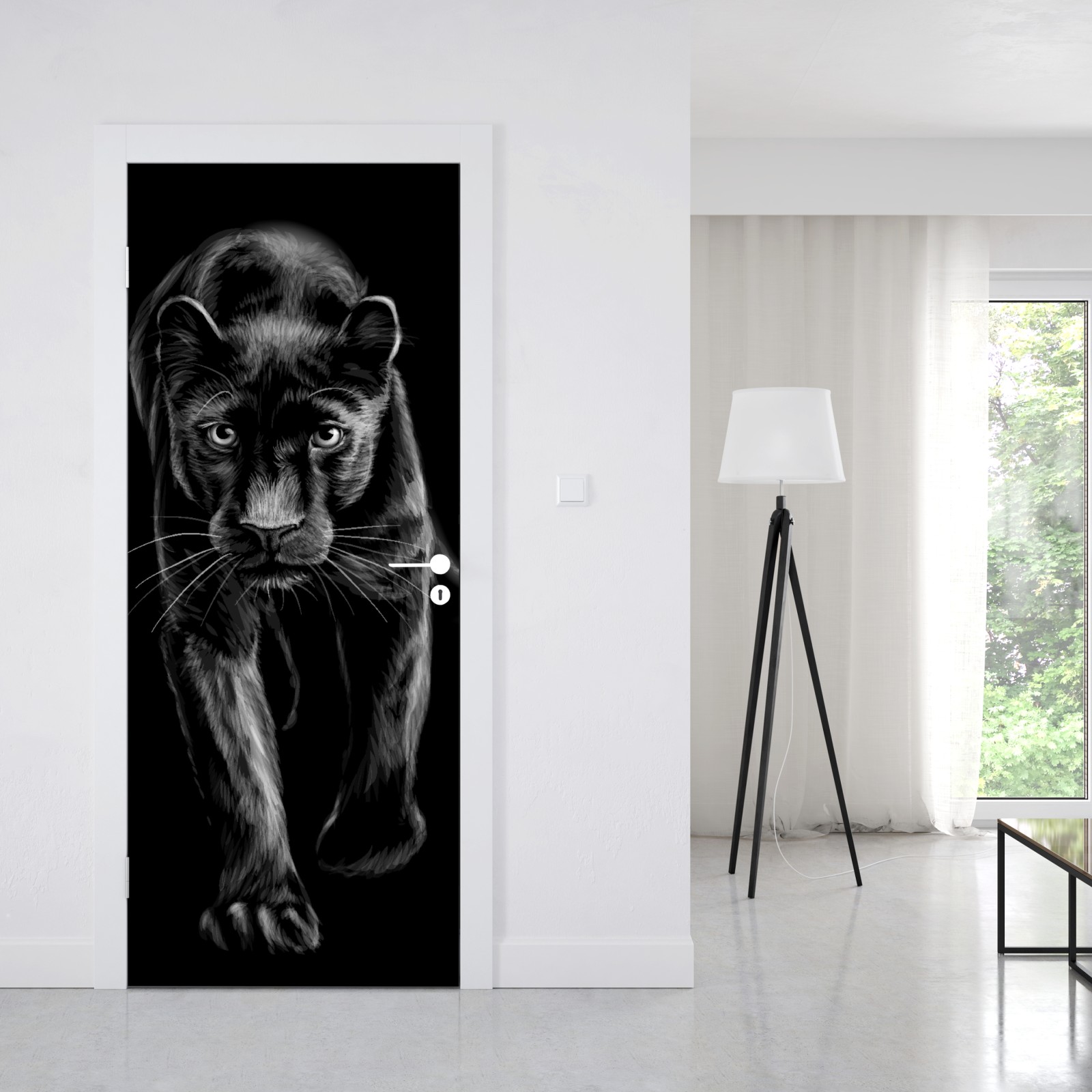 Naklejka na drzwi Krocząca czarna pantera ilustracja